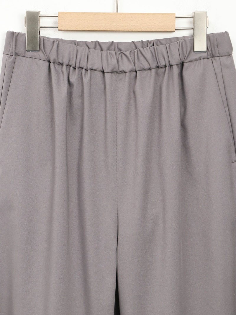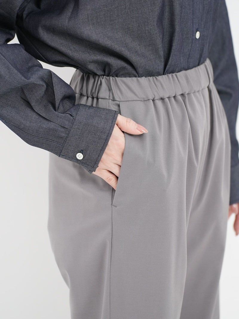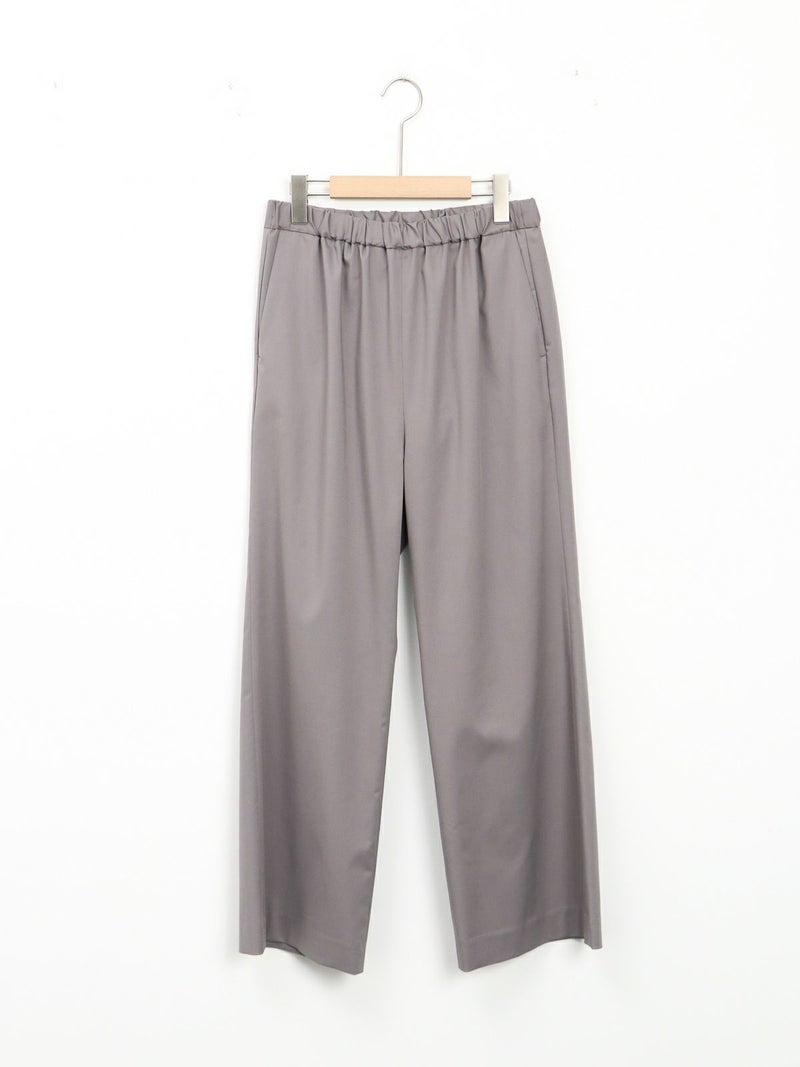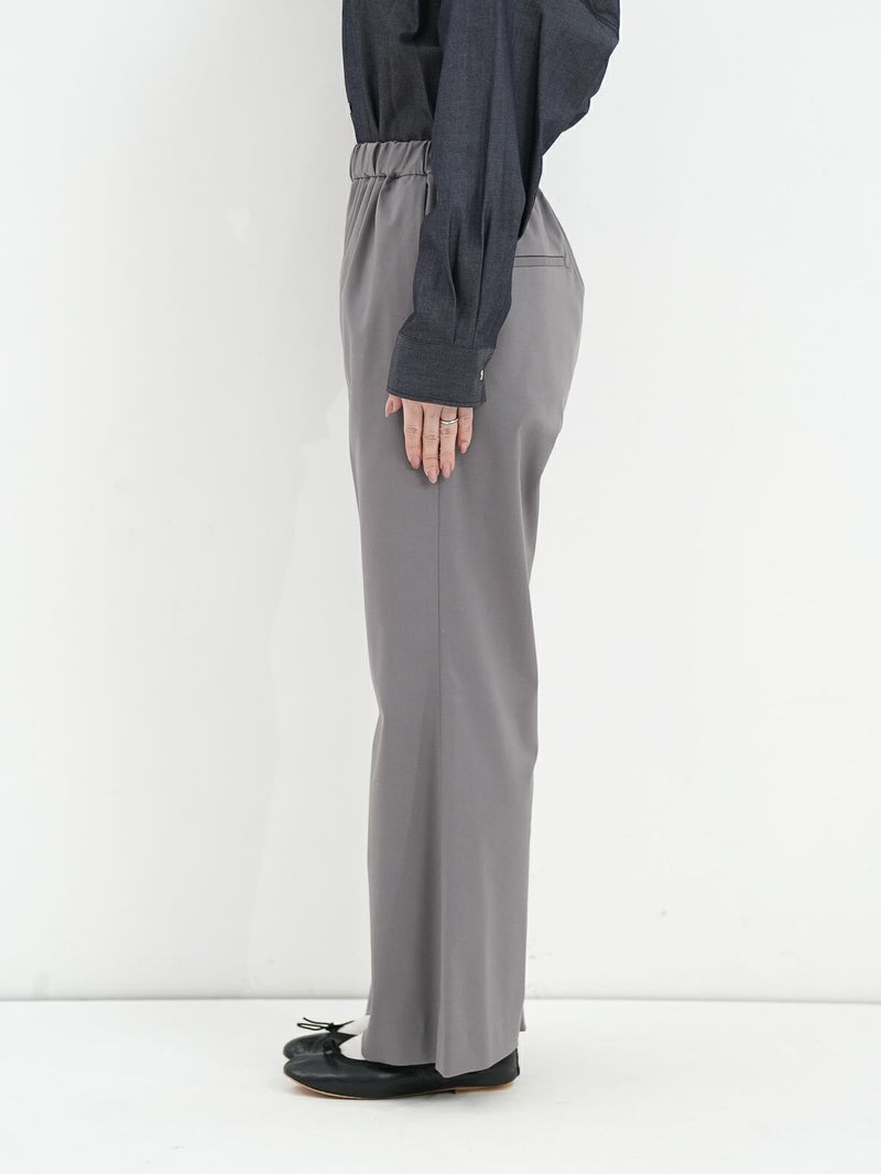 大袈裟すぎず程よいセミフレア感のパンツ。 バレエシューズやスニーカーでもバランスがとりやすい丈感。ウエストが総ゴムでストレスフリーな履き心地です。