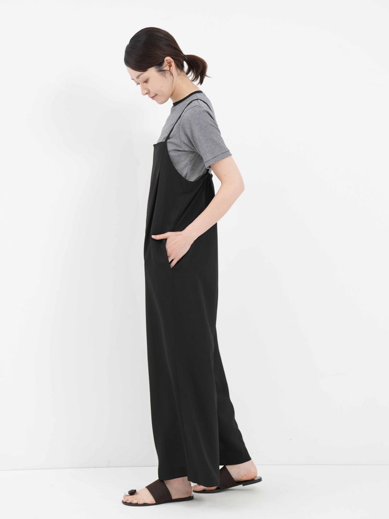 華奢なストラップとワイドシルエットのバランスが絶妙なサロペット。