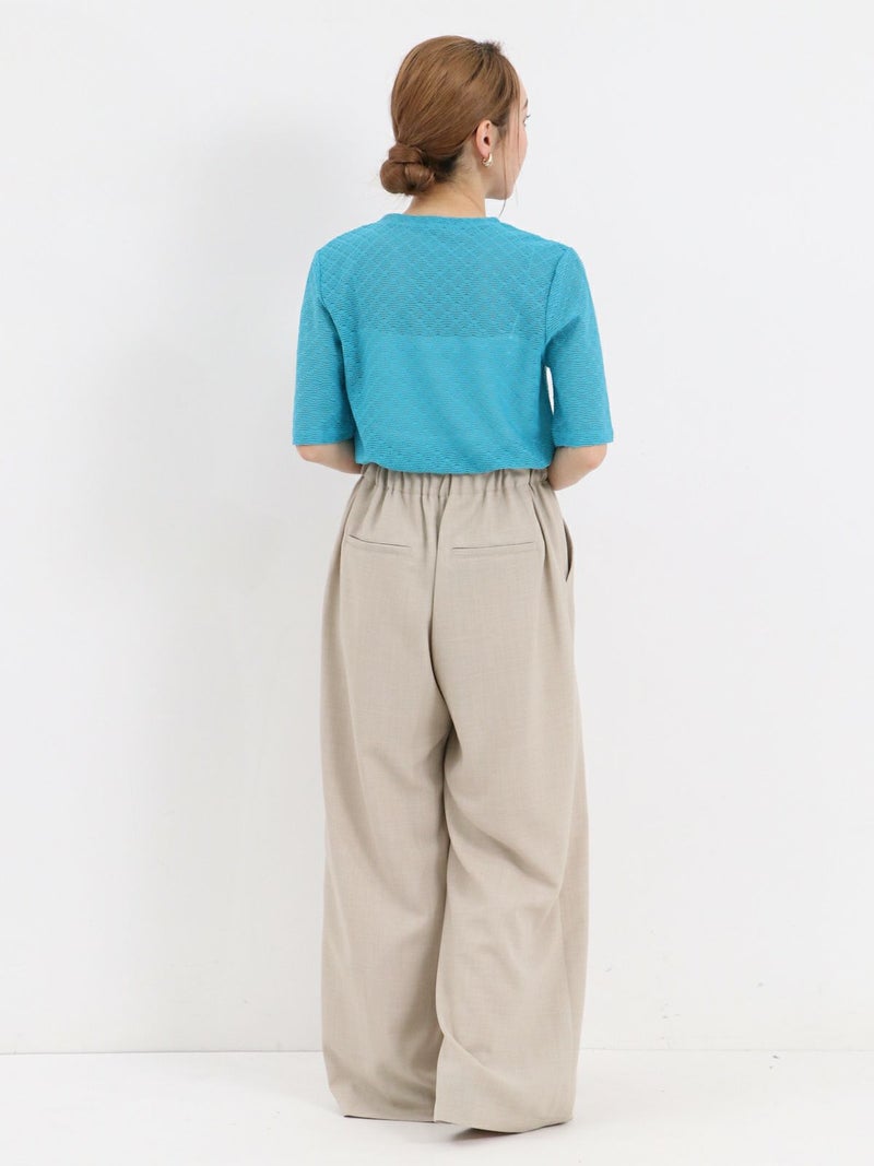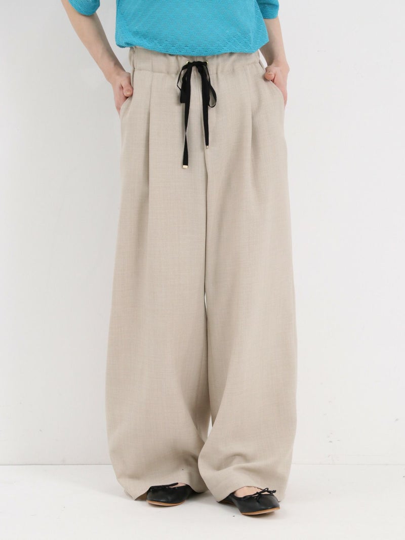 通気性、吸水性に優れたリネンライクのワイドパンツ。 脚のラインを拾わない広めのワイドシルエットです。スタイルアップして見える上品なパンツです。