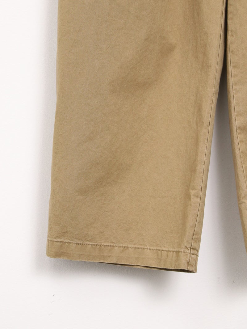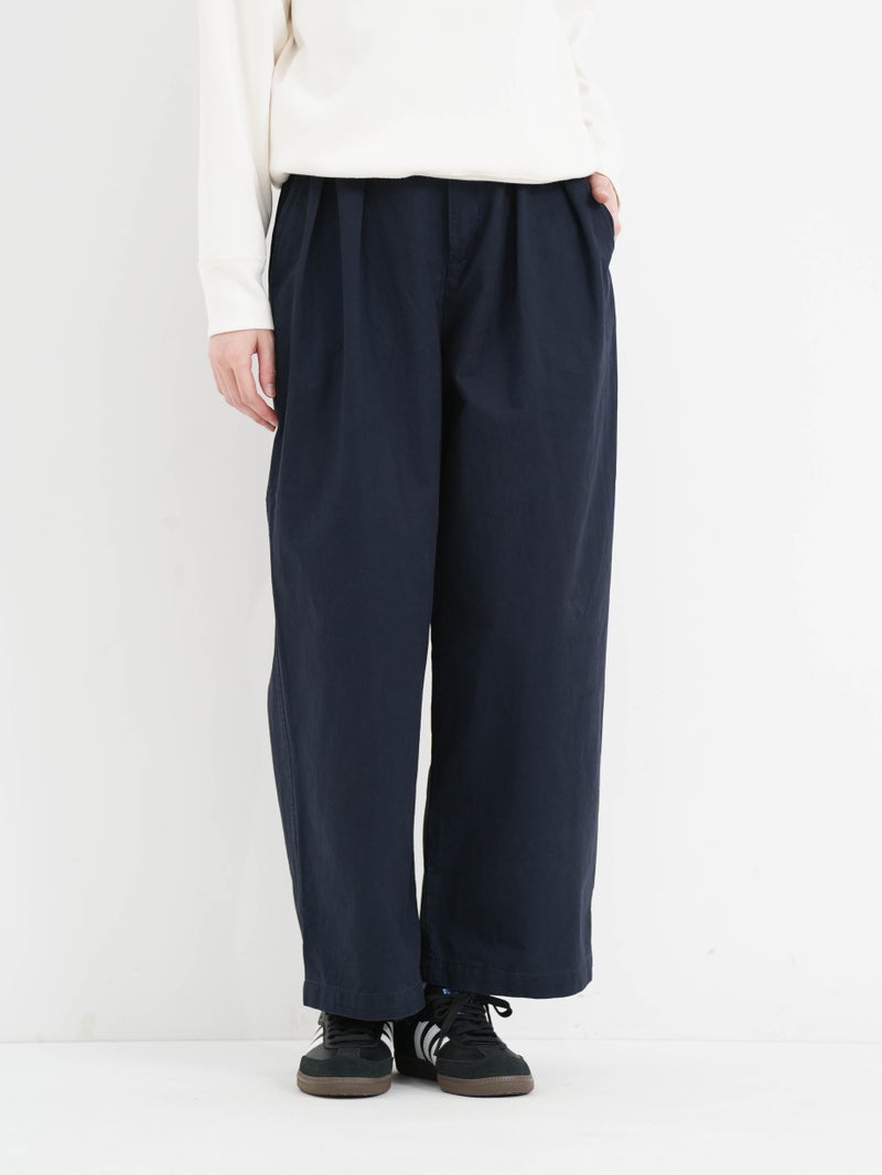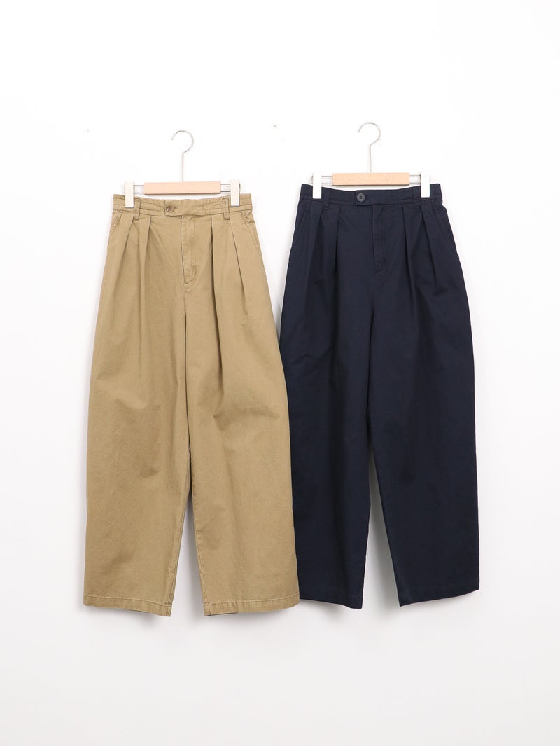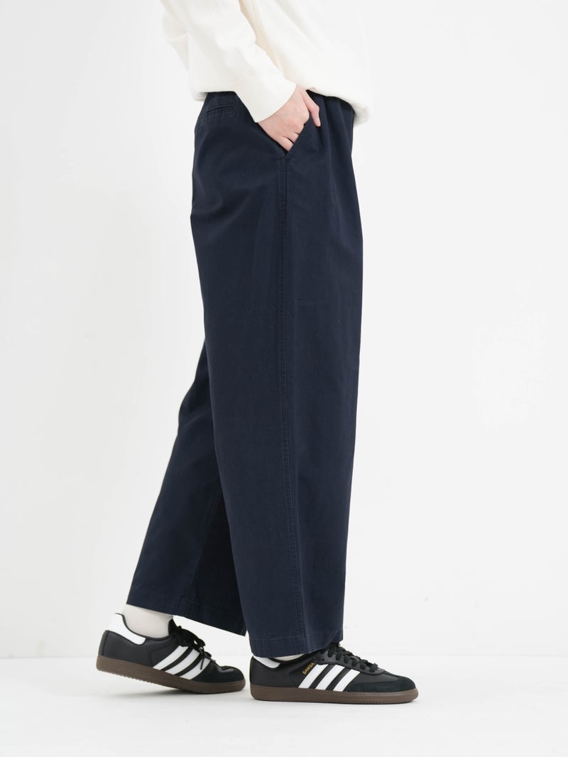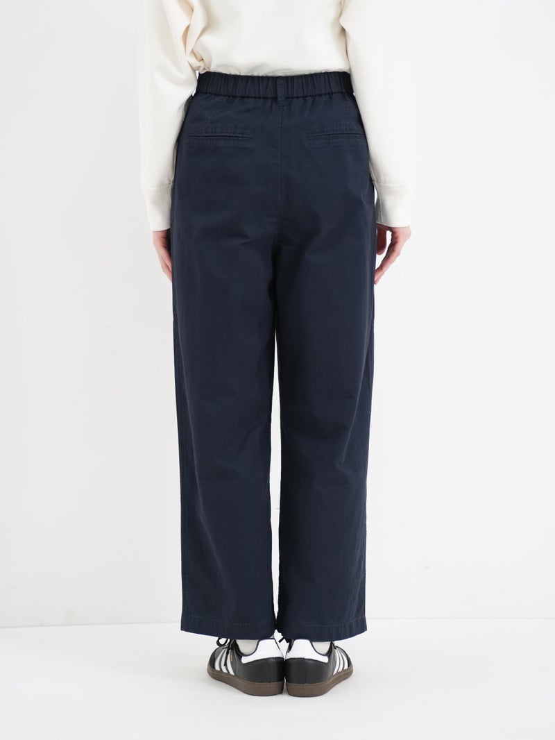 バイオストーン加工が施されており、ごわつきのない柔らかな穿き心地。カジュアルなアイテムはもちろん、甘めなブラウスと合わせると、こなれたMIXスタイルを楽しめます。ウエストには紐でサイズ調節も可能です。
