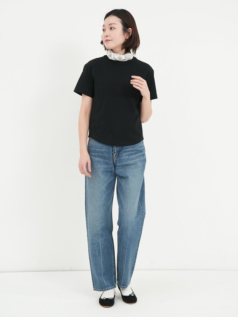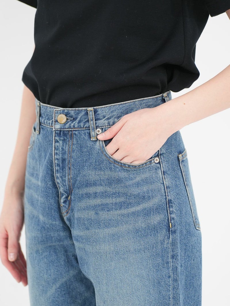 女性らしいヒップラインとゆとりのあるテーパードラインのスタンダードシルエット。 ゆとりのあるヒップと太もものデザインにウエストはジャストウエストなので安心感あるシルエットも嬉しいポイント。ベルトを合わせてトップスをインする着こなしもおすすめです。