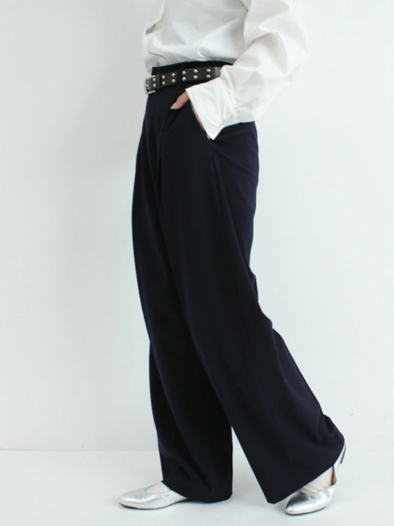 オリジナル定番のスラックスから新素材が登場! 伸縮性のある生地を使用しているため、履き心地がさらによくなりました◎ ネイビーとブラウンの2色展開で、トレンド感のあるスタイルが完成します♩