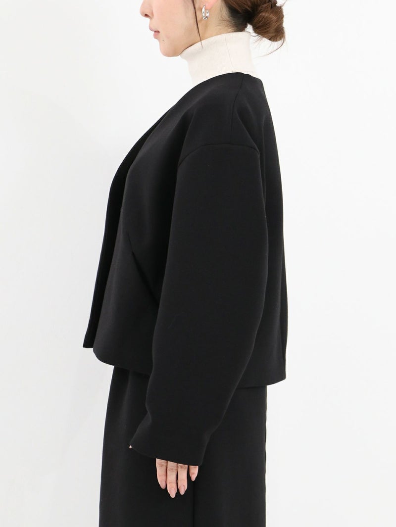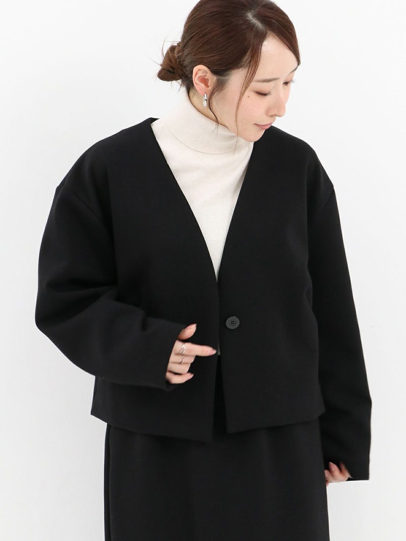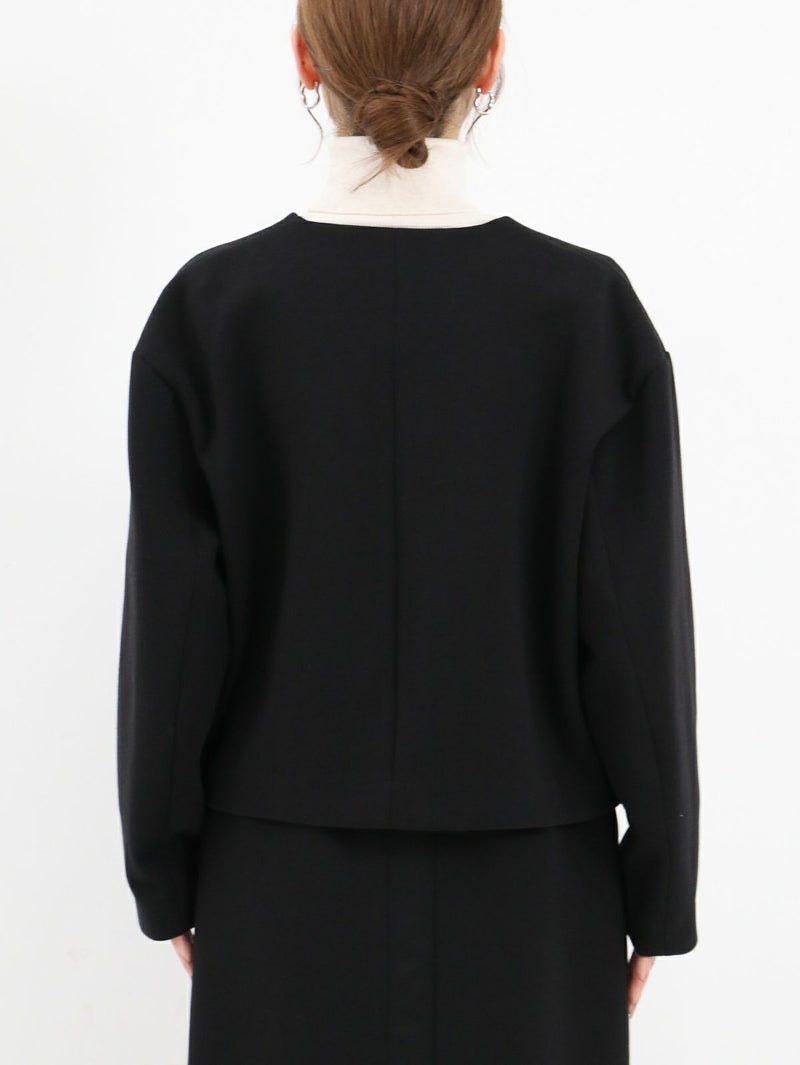 セレモニーからデイリーまで幅広く使える万能なジャケット。 伸縮性のある生地は、シワや型崩れもしにくく、スウェットのような着心地で着ていただけます。立体感とハリ感があり、体のラインを拾わずキレイなシルエットに。