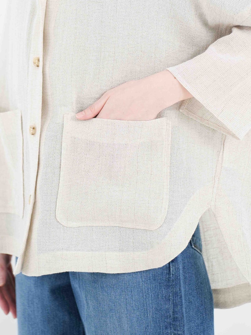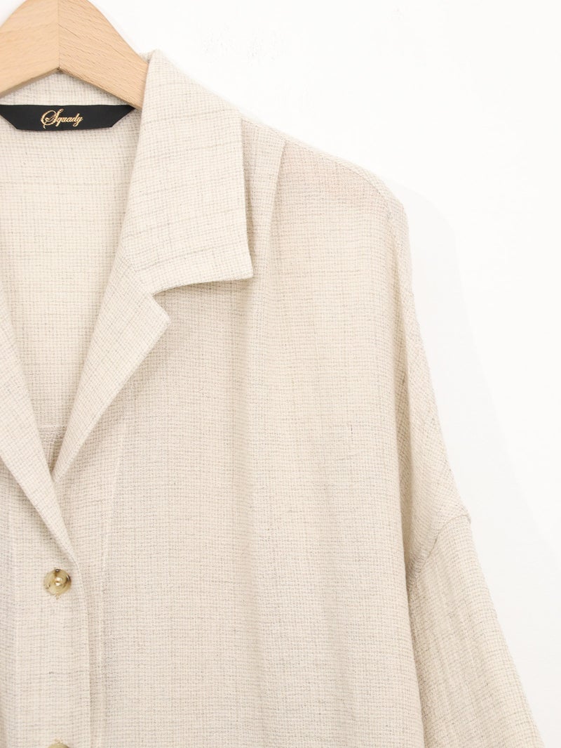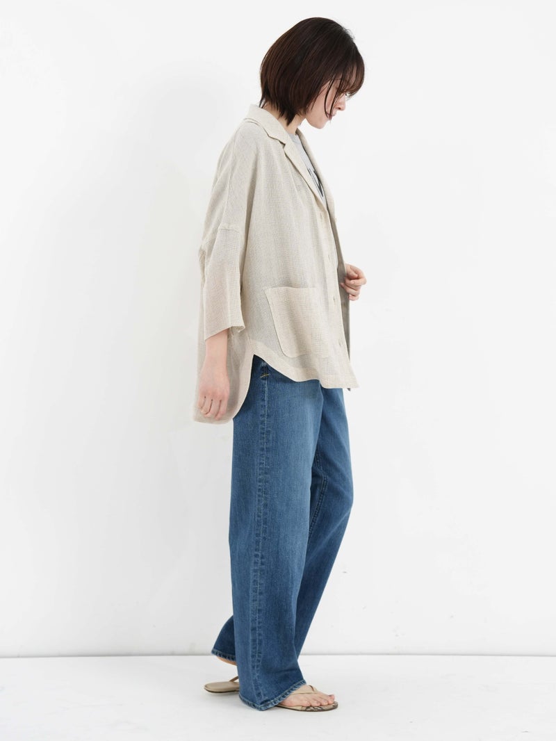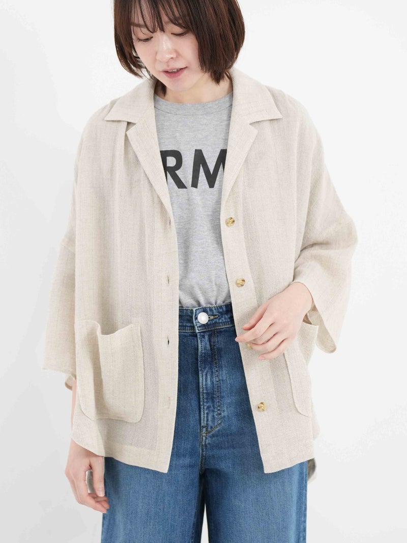 綿麻素材がポイントのテーラージャケット。 天然素材ならではの柔らかさと程よいハリ感がきちんと見えもして羽織りやすい一枚。デイリー使いしやすく、Tシャツやワンピースの上にさらっと羽織れて着まわしの効くジャケットです。