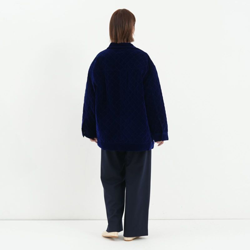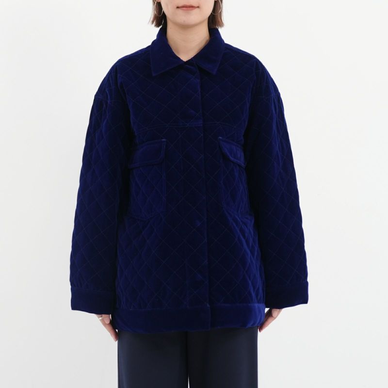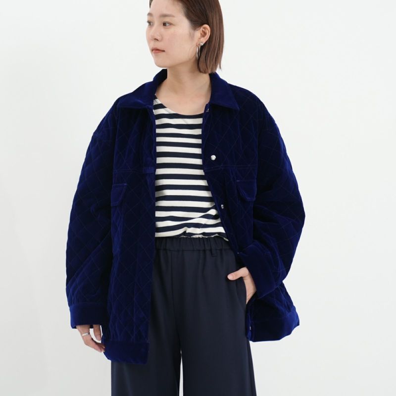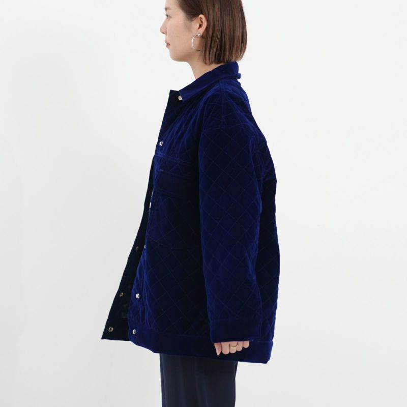 FUKAYA originalのベロアキルティングジャケット。 滑らかな質感で上品なベロア素材を使用しています。 なじみのあるミリタリーのキルティングライナーをイメージしたデザインで着やすさも抜群◎羽織るだけでスタイリングが決まる、大人のきれいめカジュアルスタイルにぴったりのアイテムです。