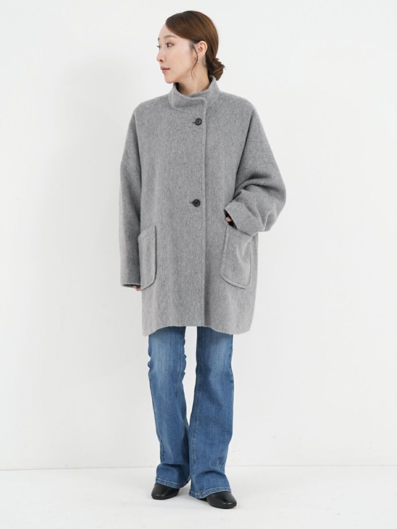 長すぎない丈感で、ワイドなボトムスとの相性も抜群です。首元を包み込むスタンドカラーのデザインは防寒性もばっちりで、しっとりやわらかな高級感のある手触りはコーデを高見えさせてくれます。