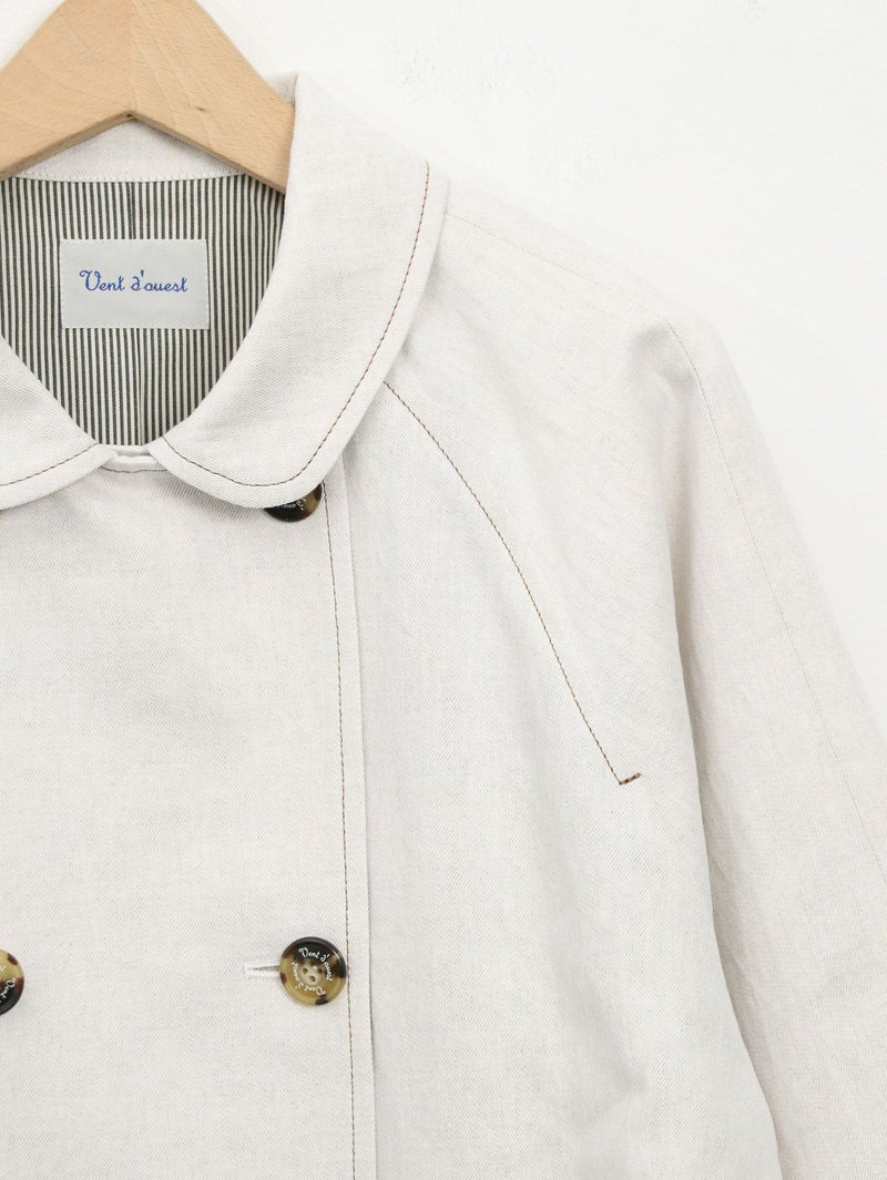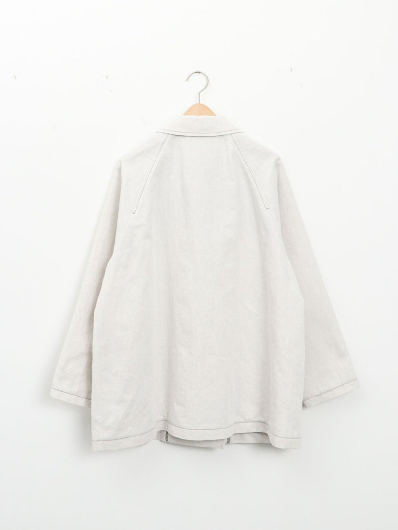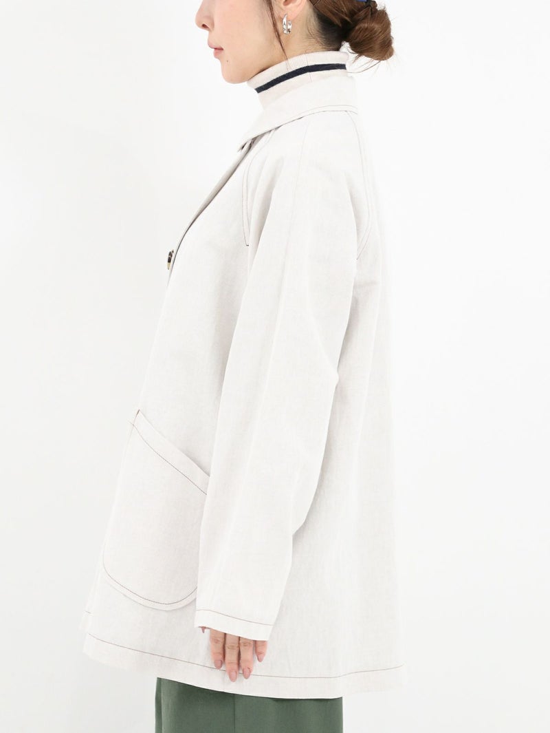 春先まで着られるコットンリネンデニムコート。 薄手ながら程よいハリがあり、柔らかい風合いでさらっと羽織れる1枚。ゆったりとしたサイズ感で、中に厚手のトップスも重ねやすいです◎
