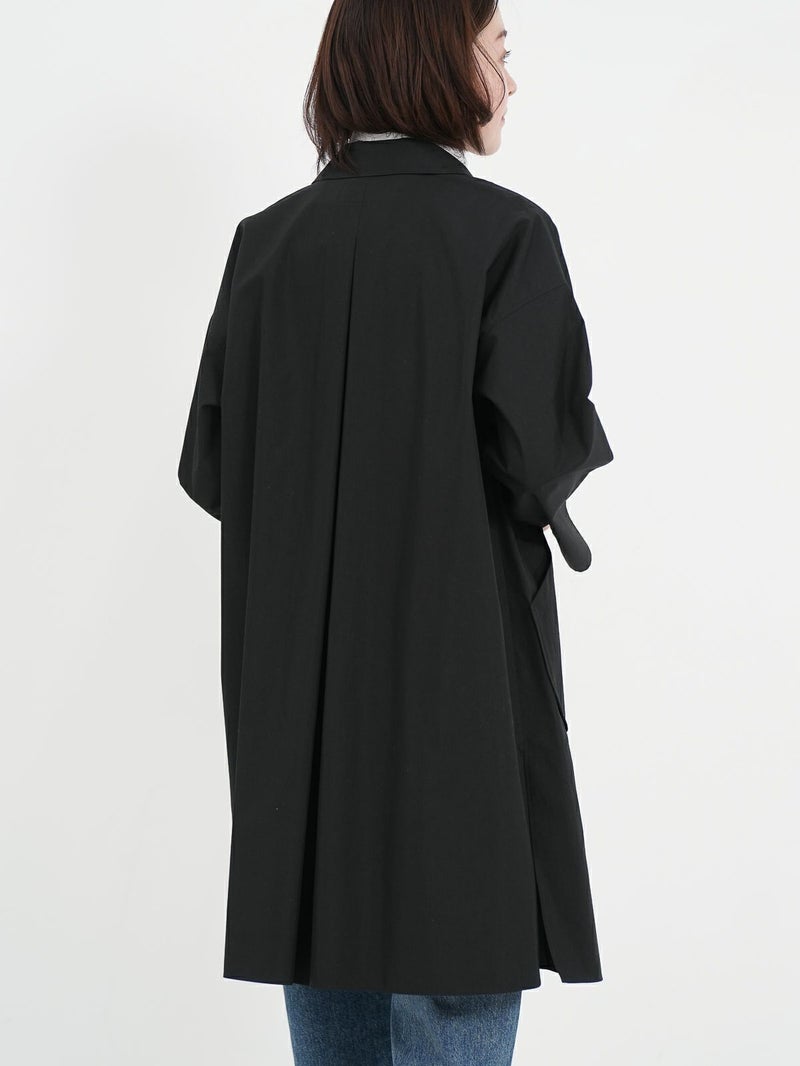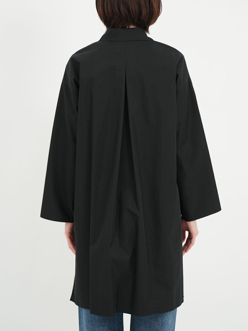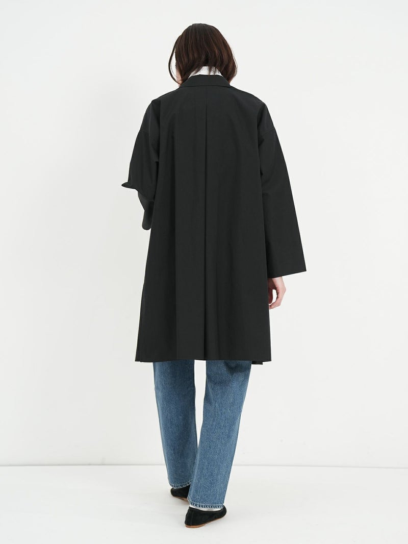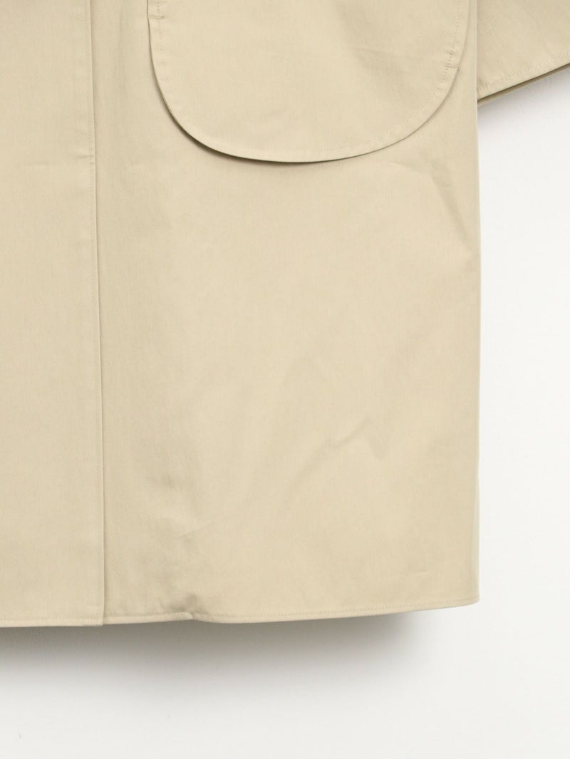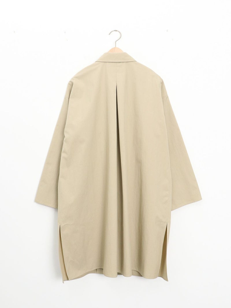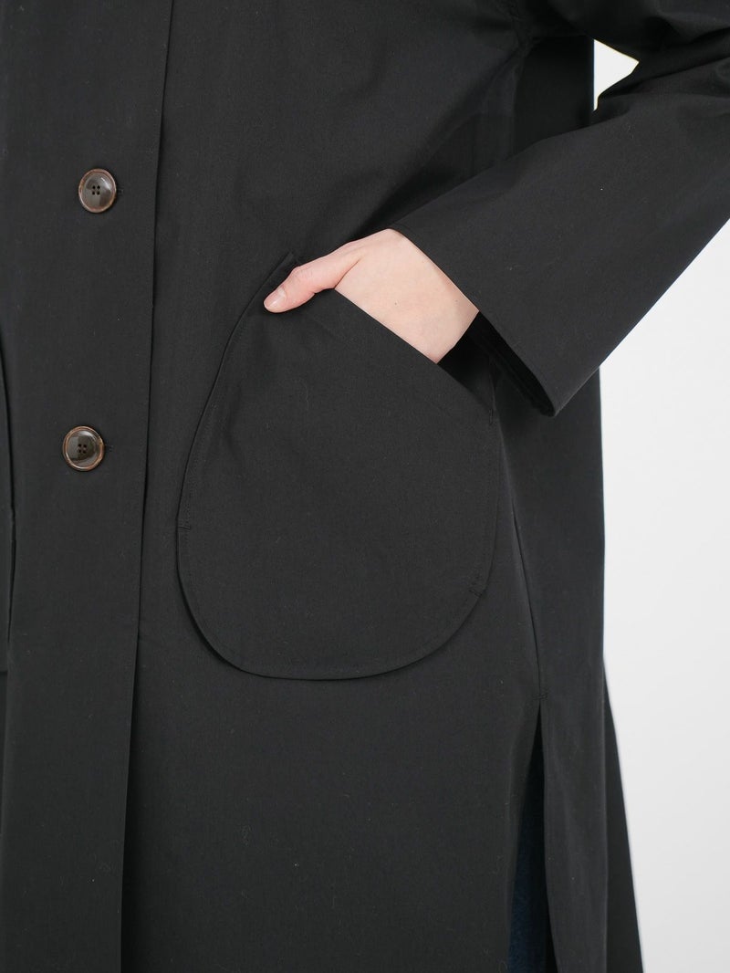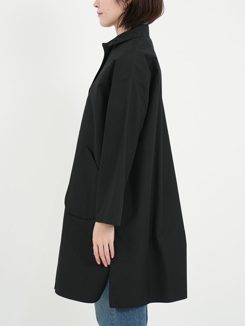 丸襟やボタン、ポケットデザインがマンナらしいコート。 薄手なコットンナイロン素材が使用してあり、さらりと軽い着心地です。程よくゆとりのあるサイズ感で、裾にかけて広がるAラインシルエットも魅力的。カジュアルなスタイルにはもちろん、少しツヤ感のある生地なのできれいめなスタイルにも◎