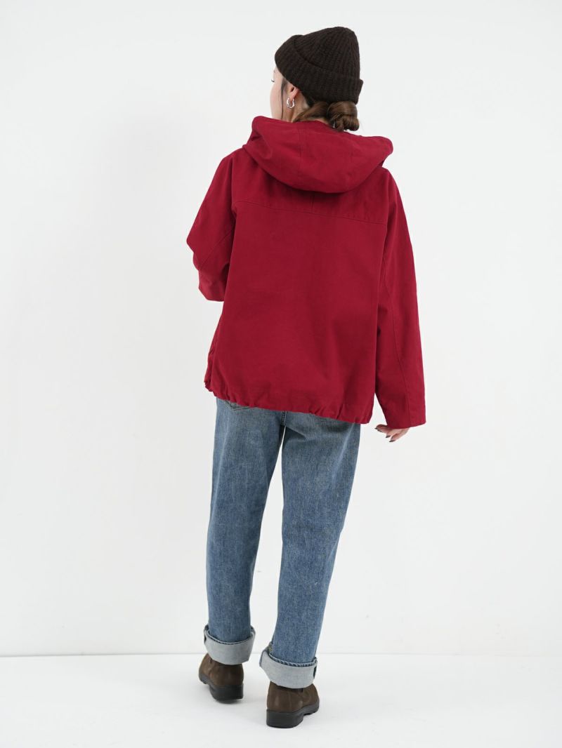 胸のところに大きなポケットがついたカジュアルなデザインです。パンツにはもちろん、スカートやワンピース、ブーツとのガーリーなコーディネートにも◎