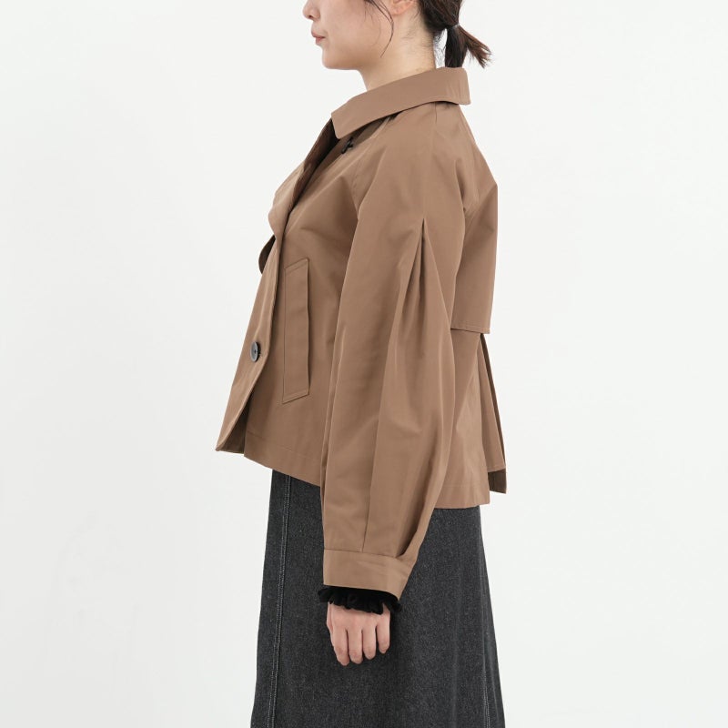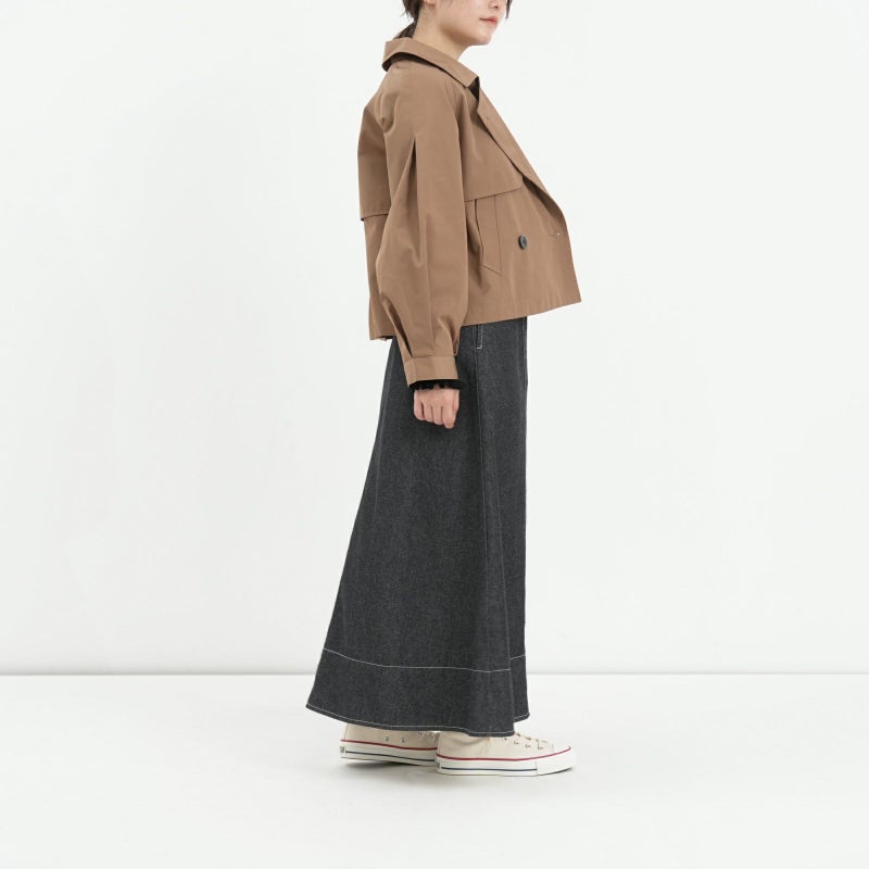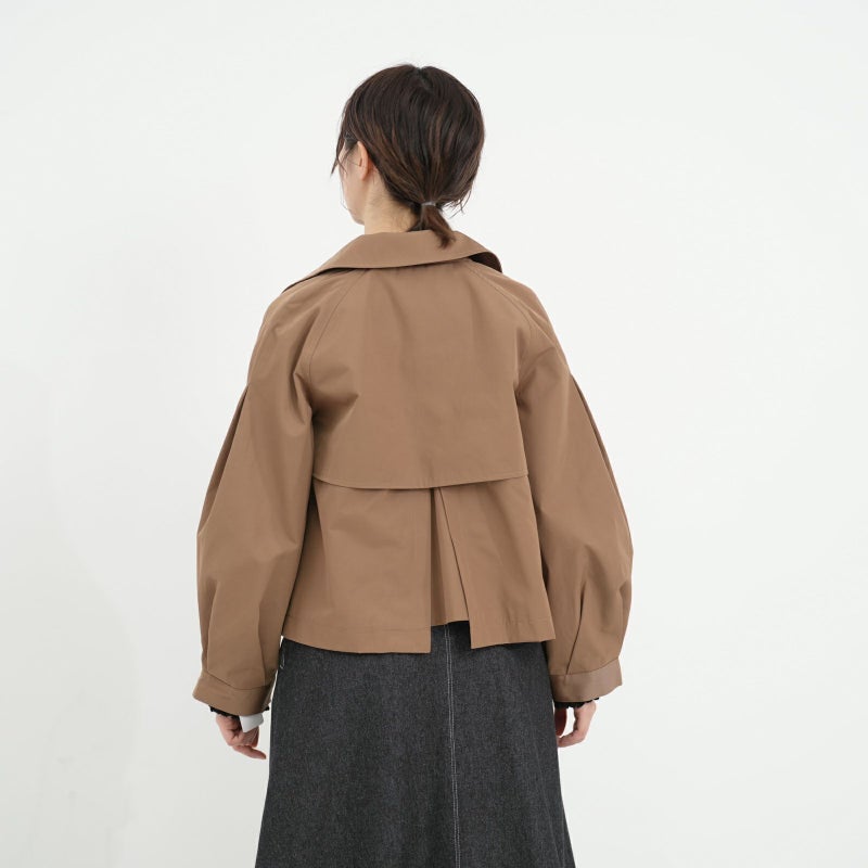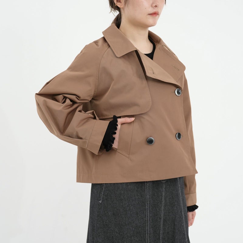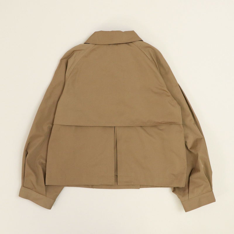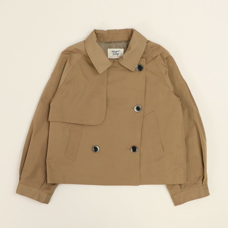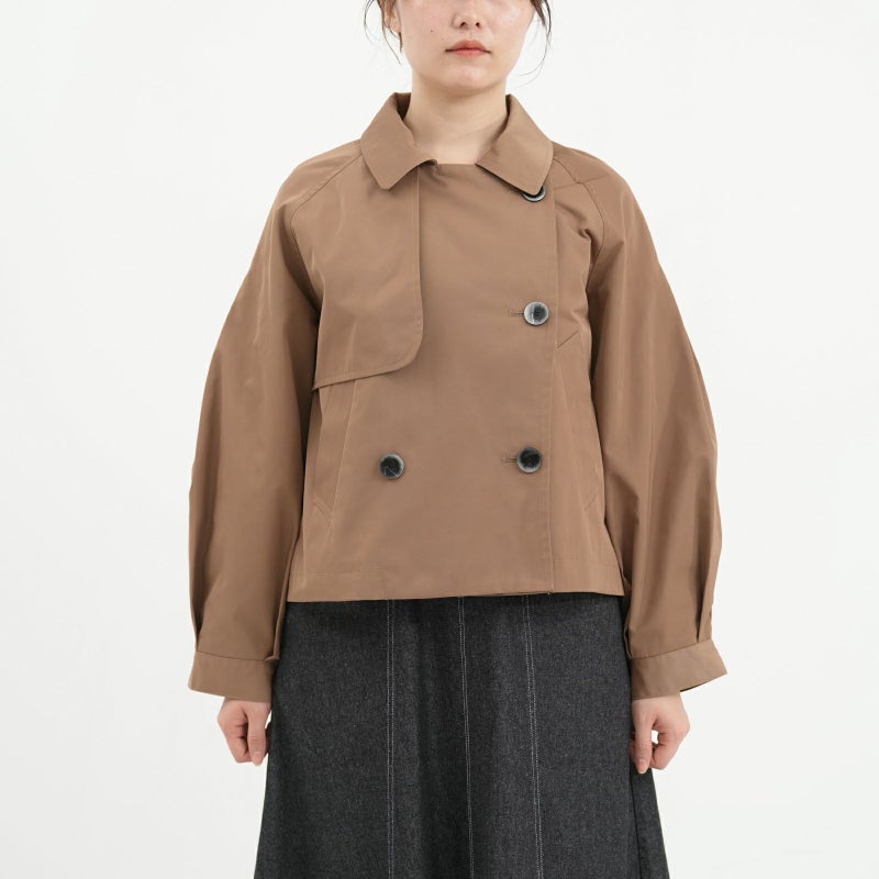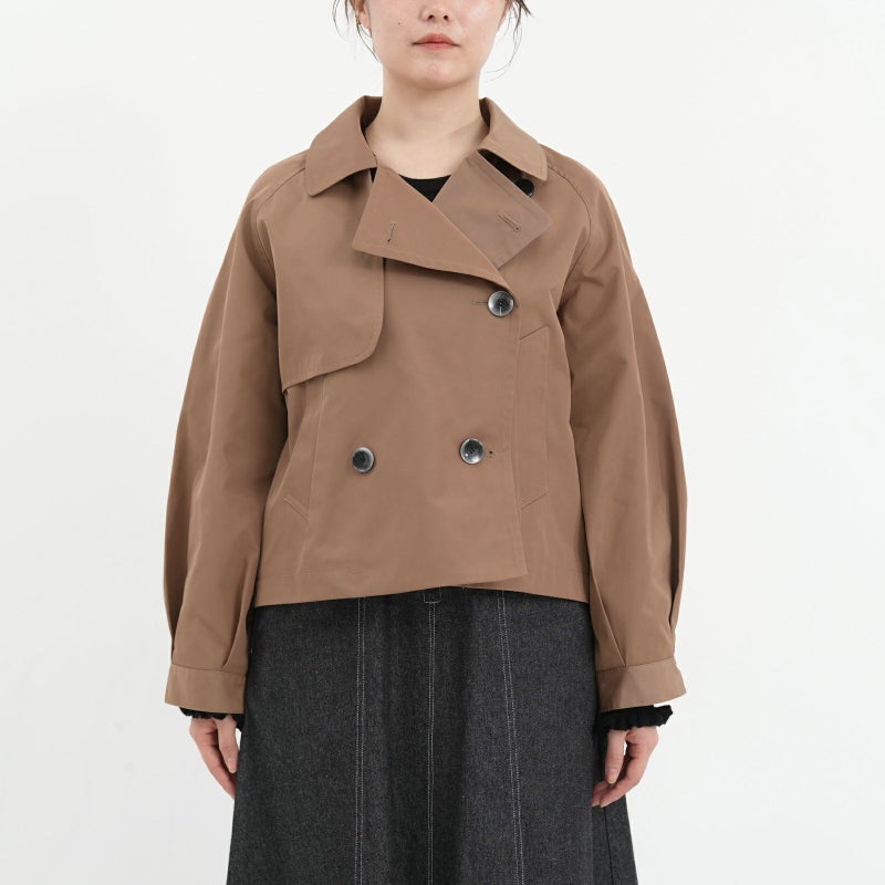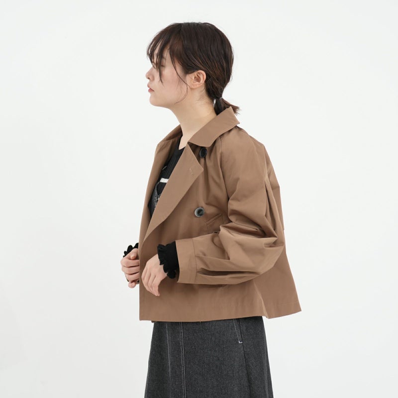 撥水性のあるロクヨン素材を使用して作られたショート丈トレンチ。 シーズンを通じて使いやすく、またスタイルを選ばず合わせやすいアウターです。エポーレットやパッドなど不要なディテールは無くし、全体のバランスが良いデザインに仕上げられています。