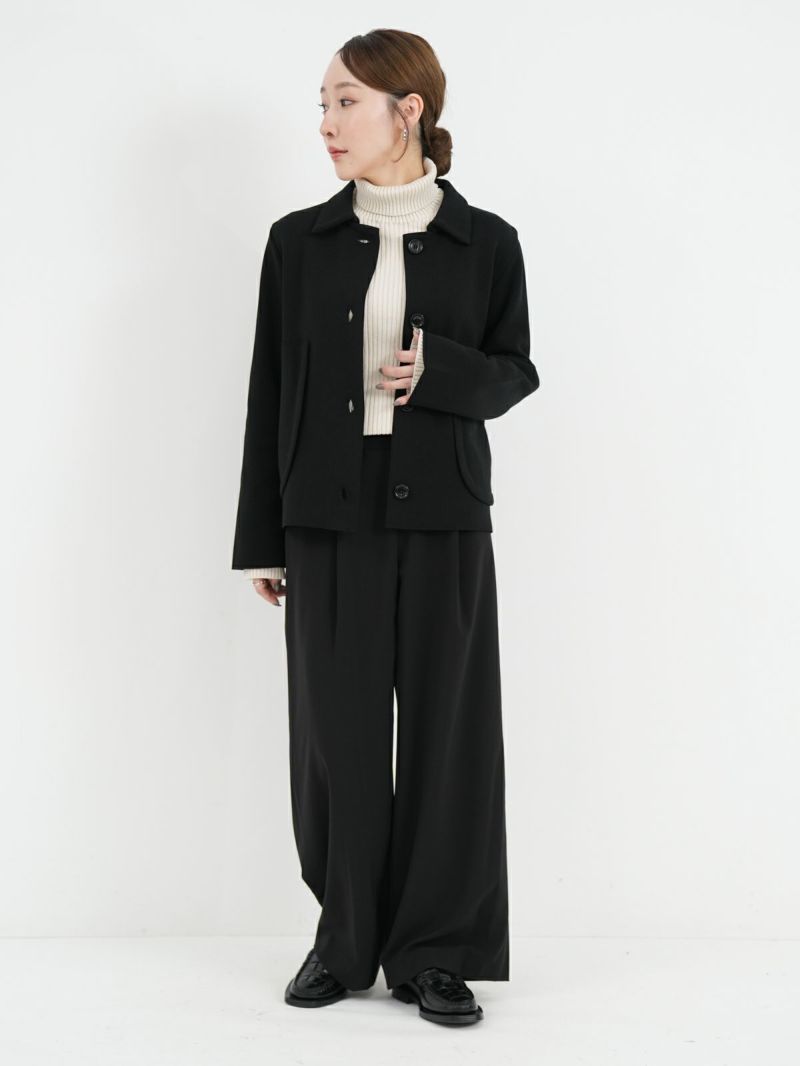 コットンとポリエステルの混合素材でどんなボトムともバランスの取りやすい絶妙なショート丈。カジュアルからキレイめまで幅広いコーディネートで活躍します。