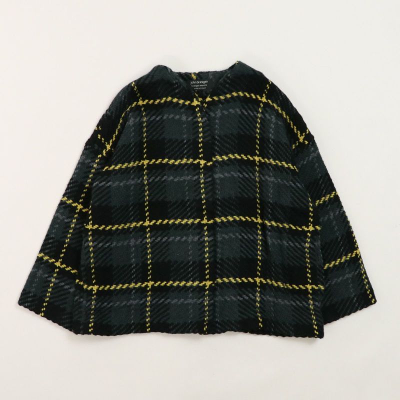John Branigan(ジョン・ブラニガン) Vネックのゆったりとしたシルエットのノーカラージャケット。 他にはないニットの技術で編み上げられるツイード生地は、軽さと柔らかさが特徴です。ニット素材なので気軽に羽織りやすく、ウール混で暖かい1枚です。