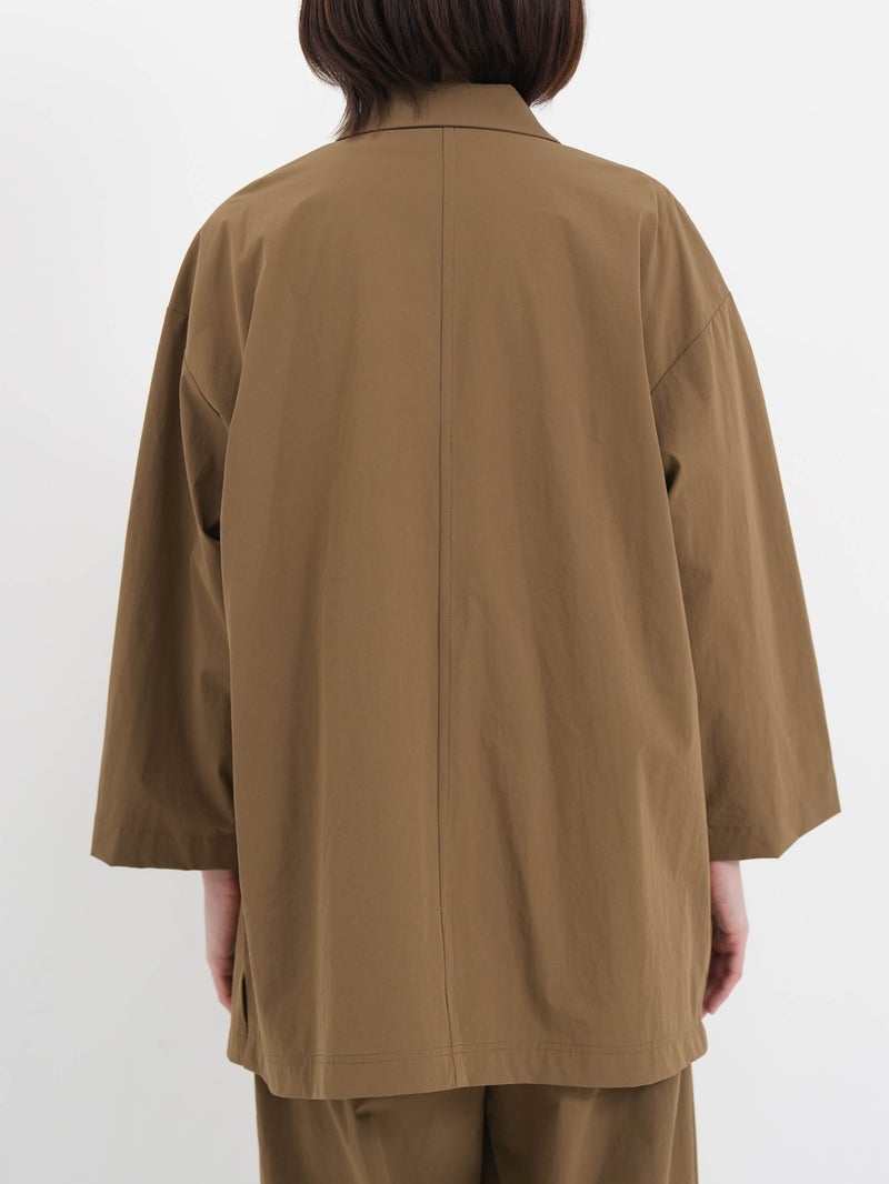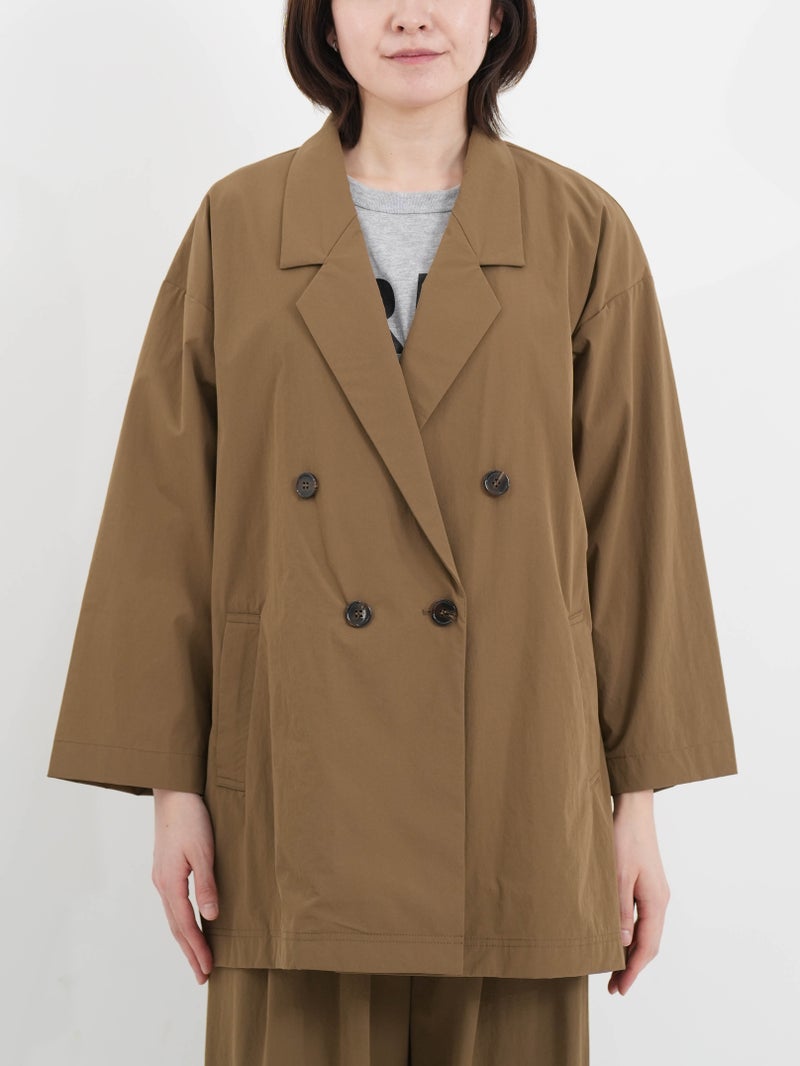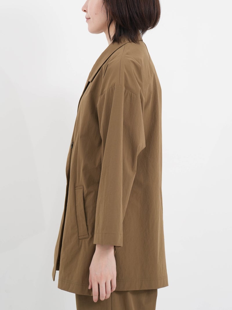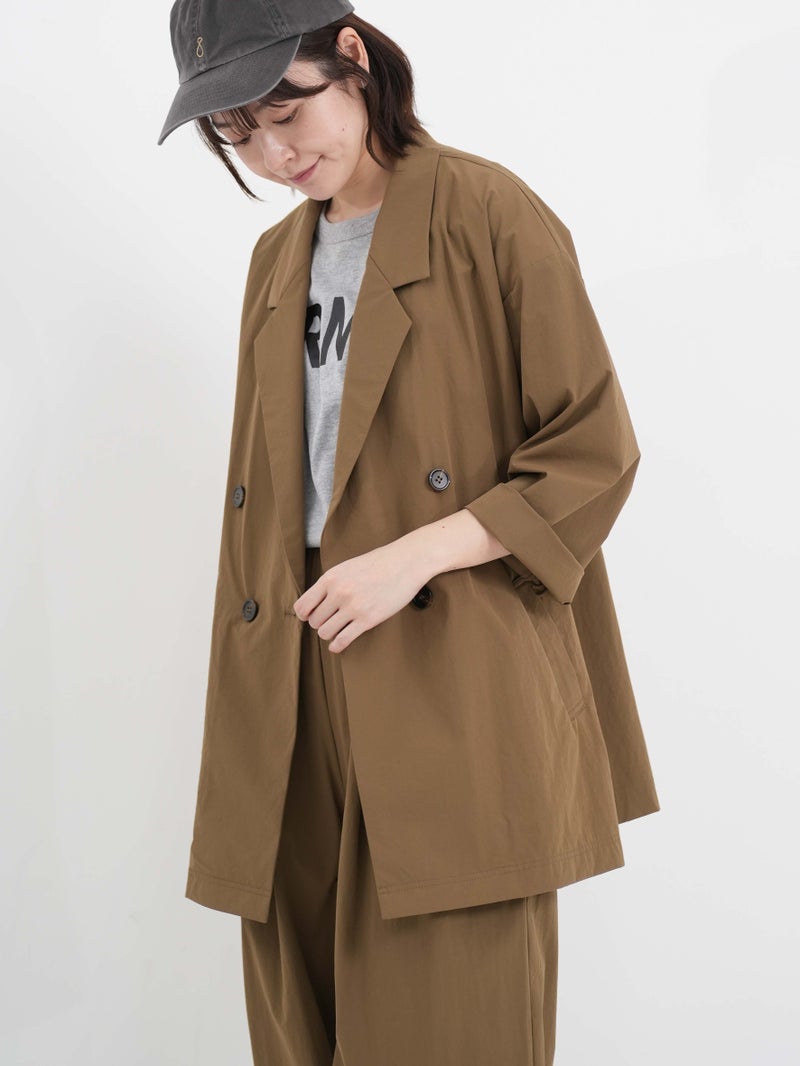 マルチに万能なドライタッチジャケット。 きちんと感もありながら、ふわっと軽く羽織れます。撥水加工や接触冷感などの機能が備わっており、ご自宅で手洗いも可能です。同素材で2タックパンツもあるため、セットアップの着用もオススメ。