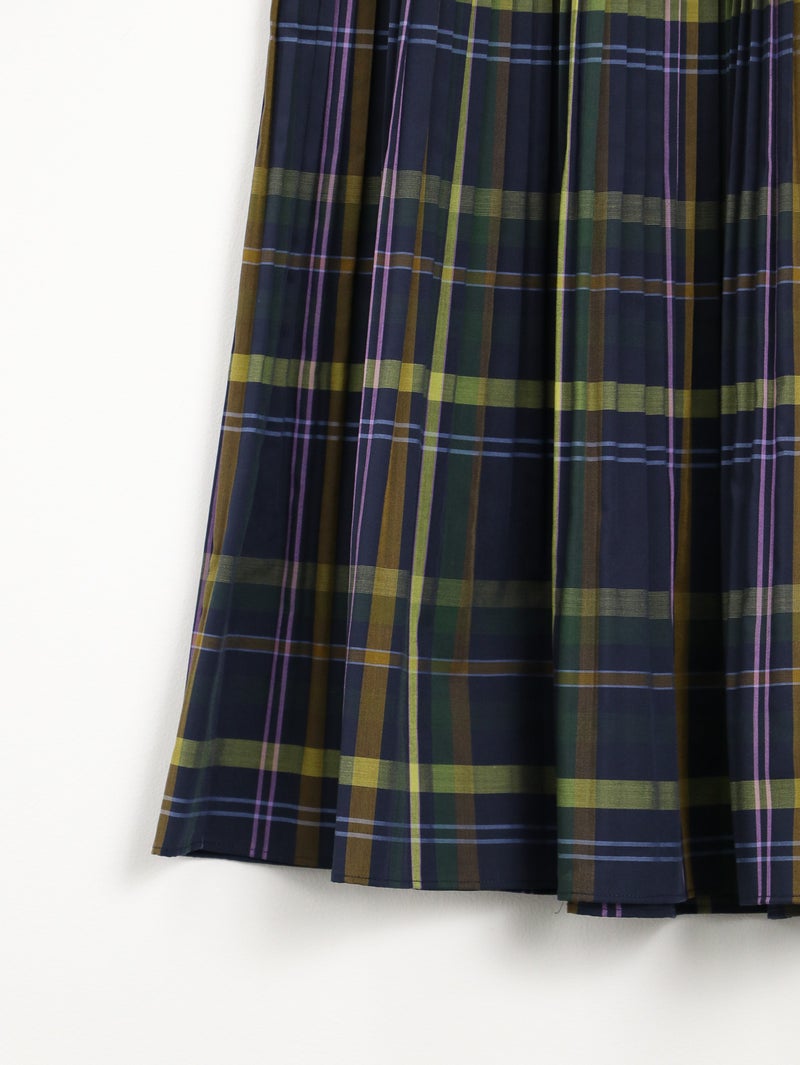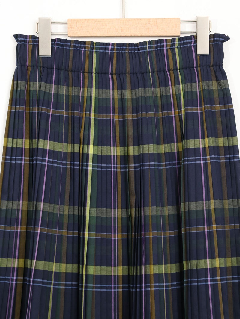 細かなプリーツが印象的なビックチェックプリーツスカート。 程よくハリのある生地感、トラッド感のあるビックチェックのデザインがコーディネートに華やかな印象を与えてくてます。軽やかな着心地で、ウエストは総ゴムの施しとなっており内紐で調節も可能です。