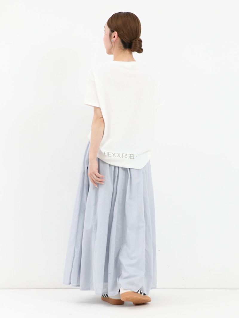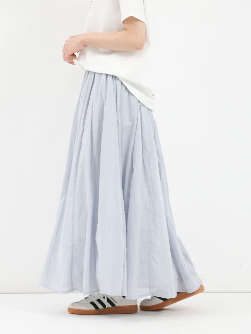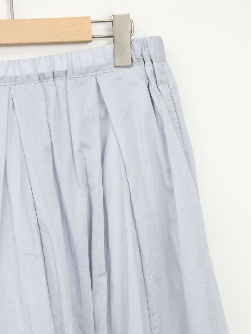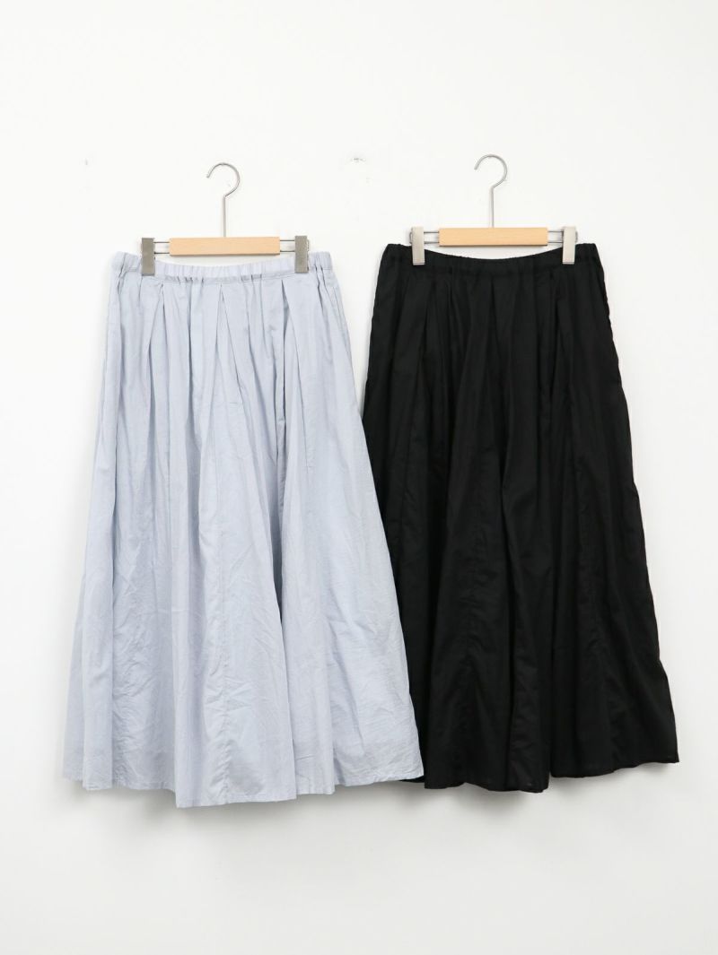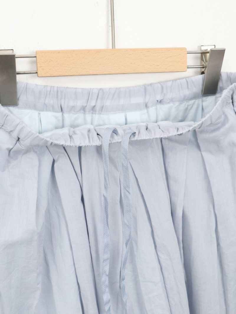 軽くて柔らかなローン生地に立体的なタックとマチを施すことで、ふんわりと美しいシルエットに。透け感をカバーする裏地付きで、1枚で安心して着られるのが◎ラクな穿き心地ながら、ラフになりすぎないのも嬉しいポイント。