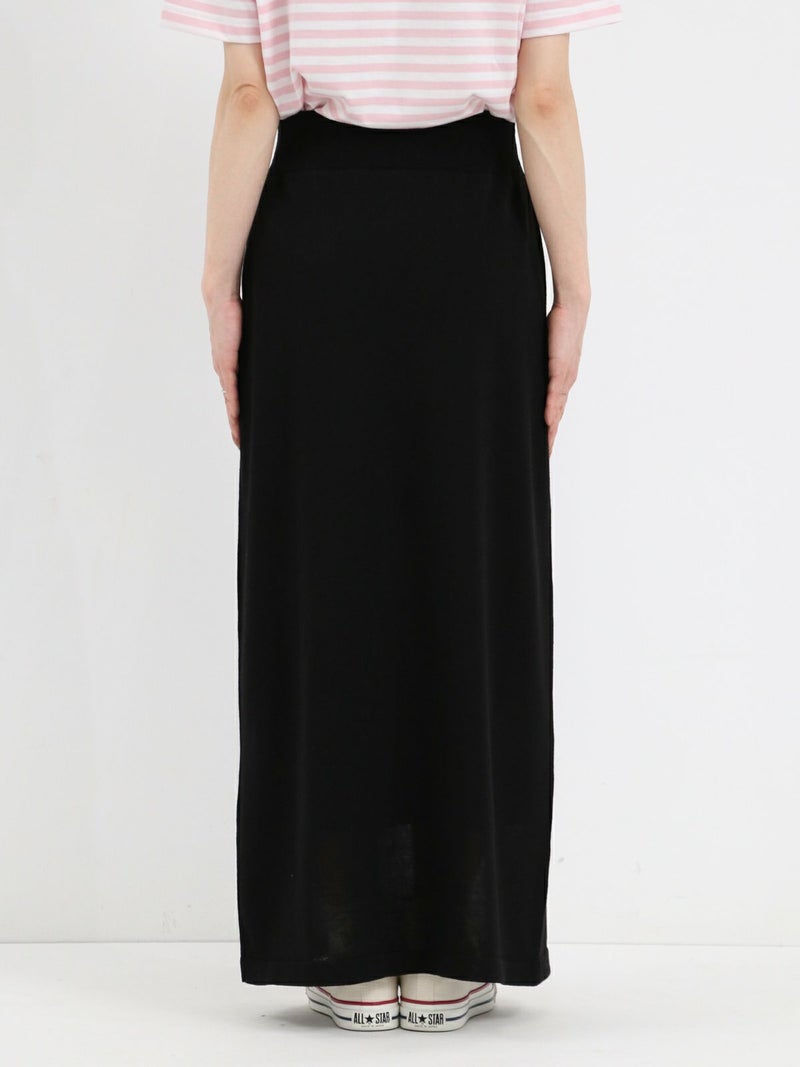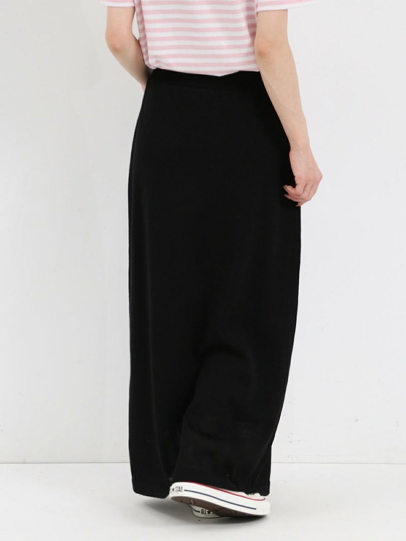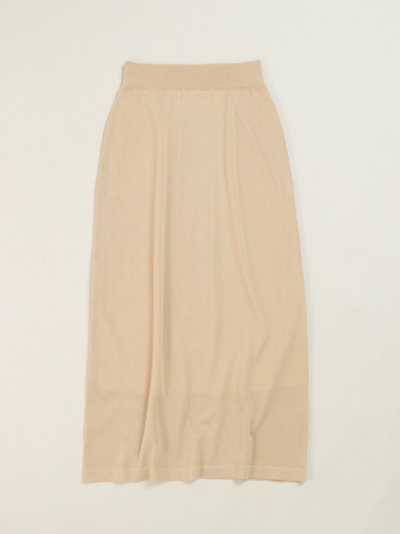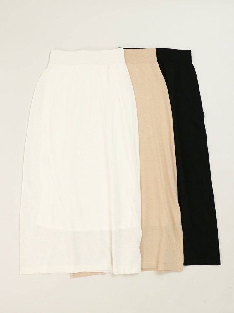すっきりとしたシルエットながらも細身すぎないのでボディーラインがひびきにくいニットスカート。裏地が付いている安心感も嬉しいポイント◎バックスリットはありませんが足さばきもGOOD!