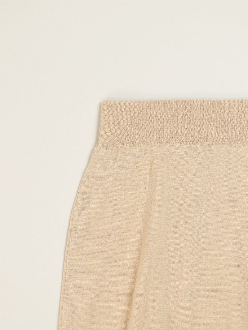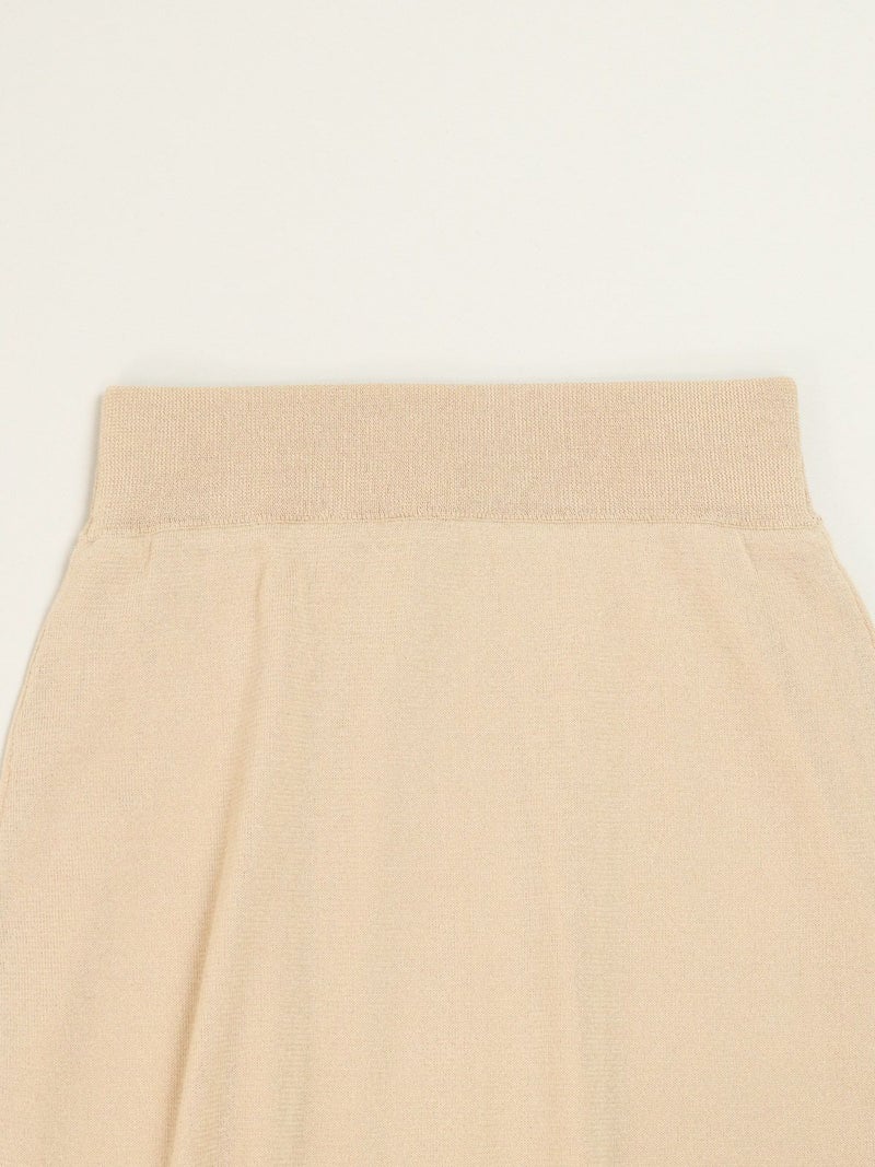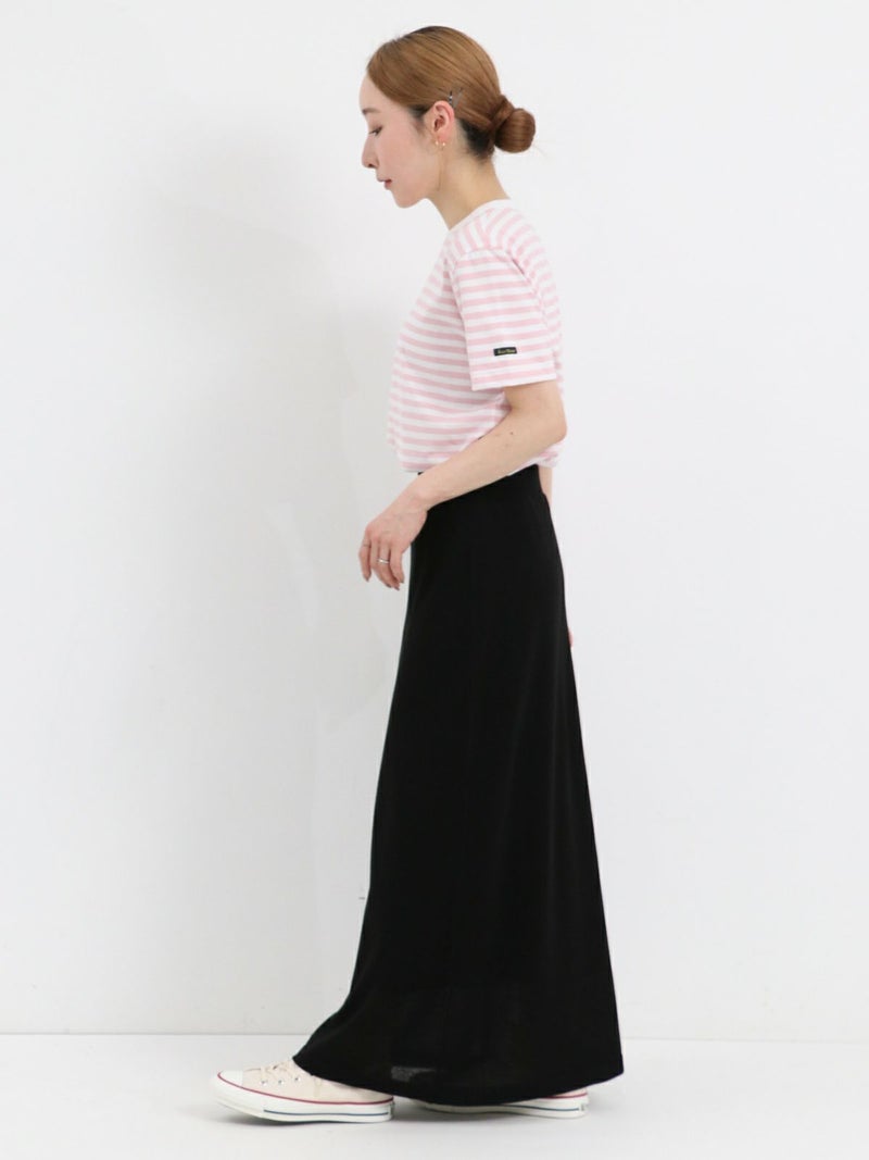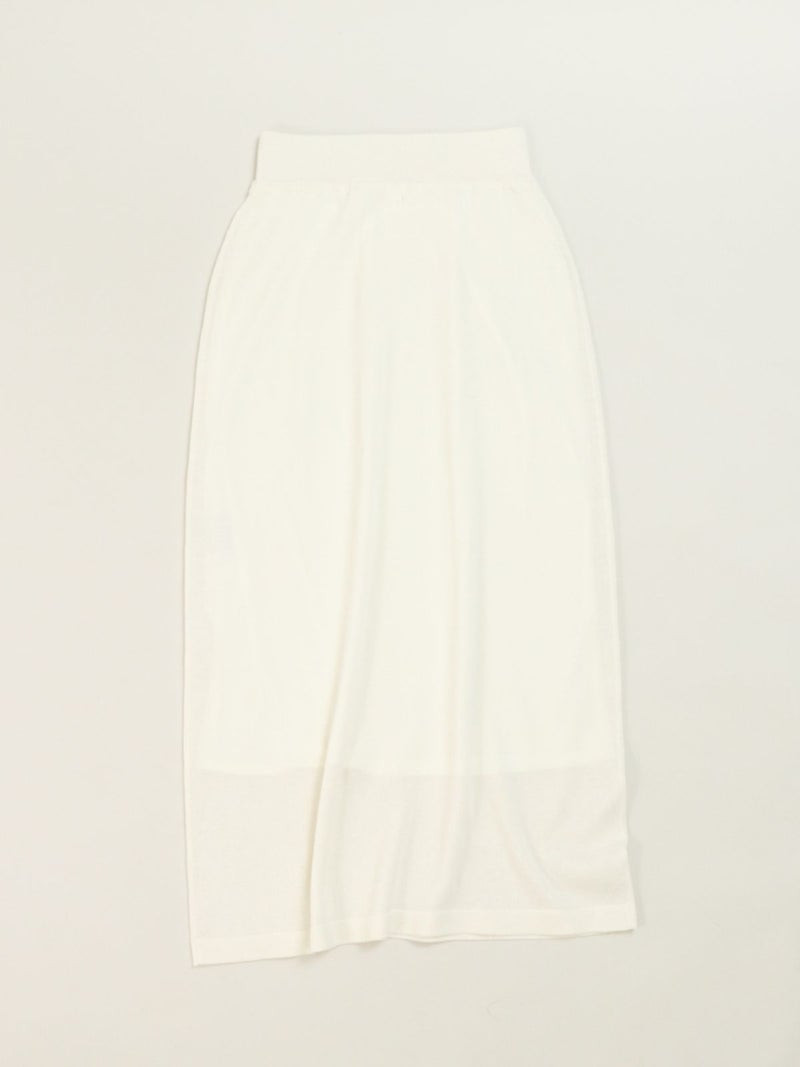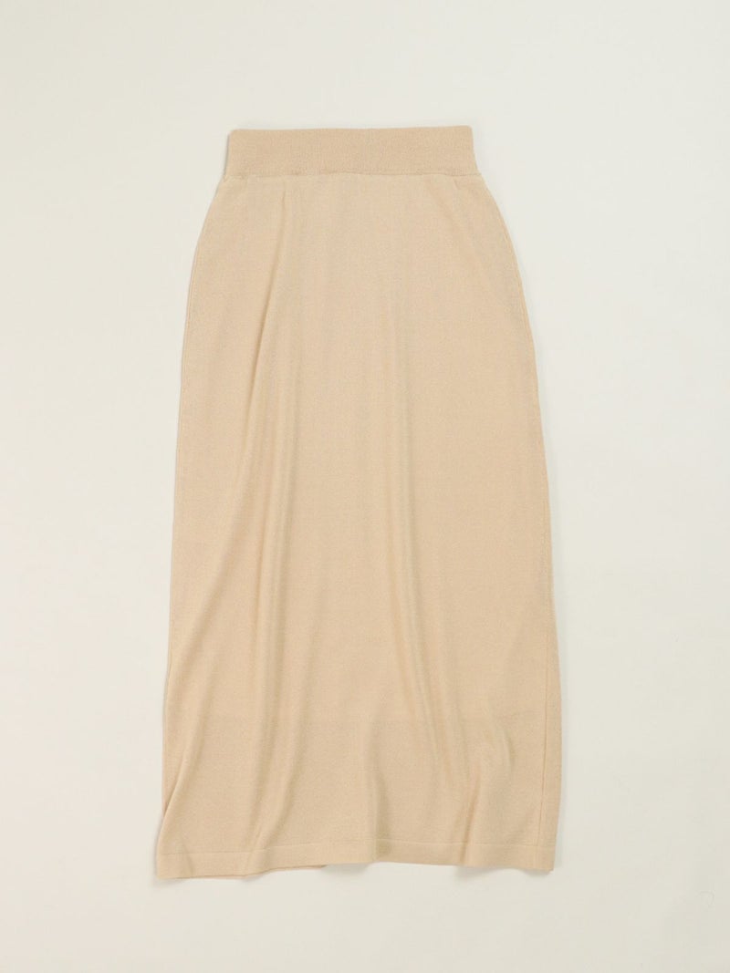 すっきりとしたシルエットながらも細身すぎないのでボディーラインがひびきにくいニットスカート。裏地が付いている安心感も嬉しいポイント◎バックスリットはありませんが足さばきもGOOD!