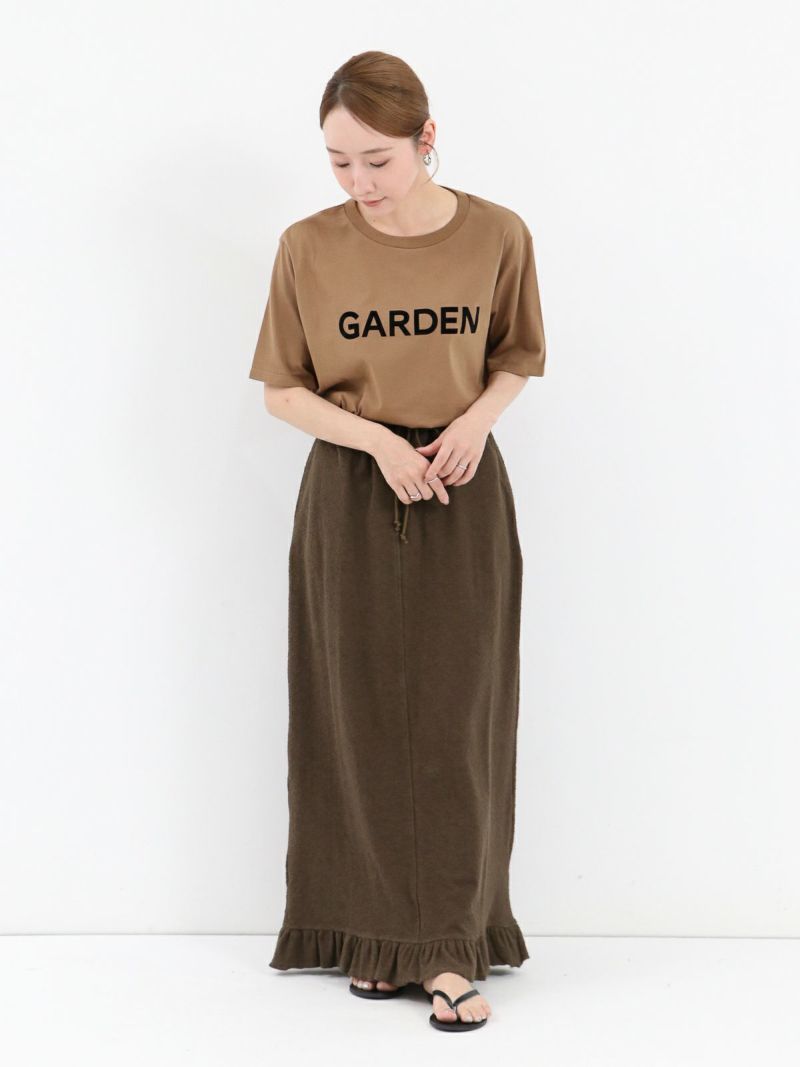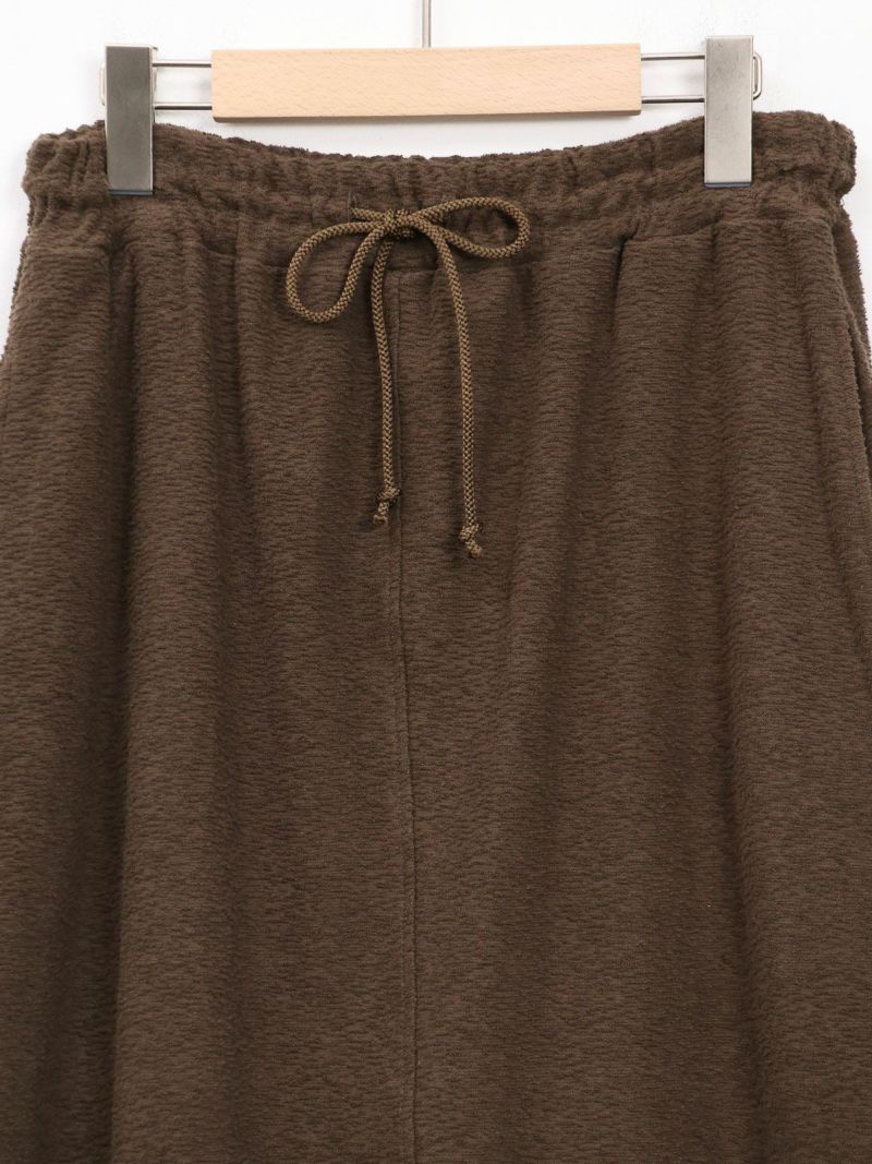 柔らかなパイル地のフリルヘムスカート。 ランダムな長さのループで表面に凹凸がありラフな印象になりすぎず◎無地のTシャツ合わせでもコーディネートが完成する1枚です。