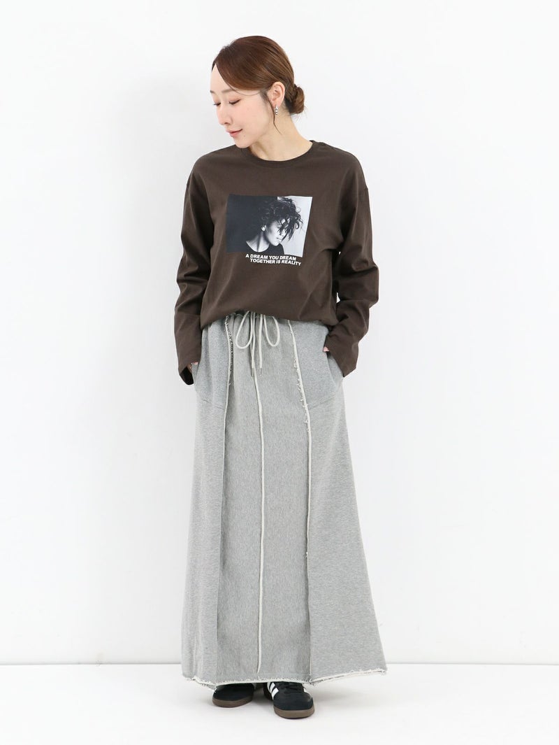柔らかな裏毛素材を使用した、ジャージースカート。 カジュアルな素材ながら、スッキリとしたシルエットで大人っぽく仕上げました。デイリー使いはもちろんきれいめトップスと合わせたMIXスタイルにもおすすめです。