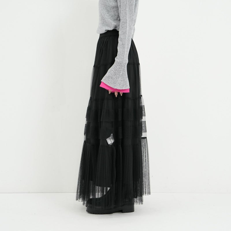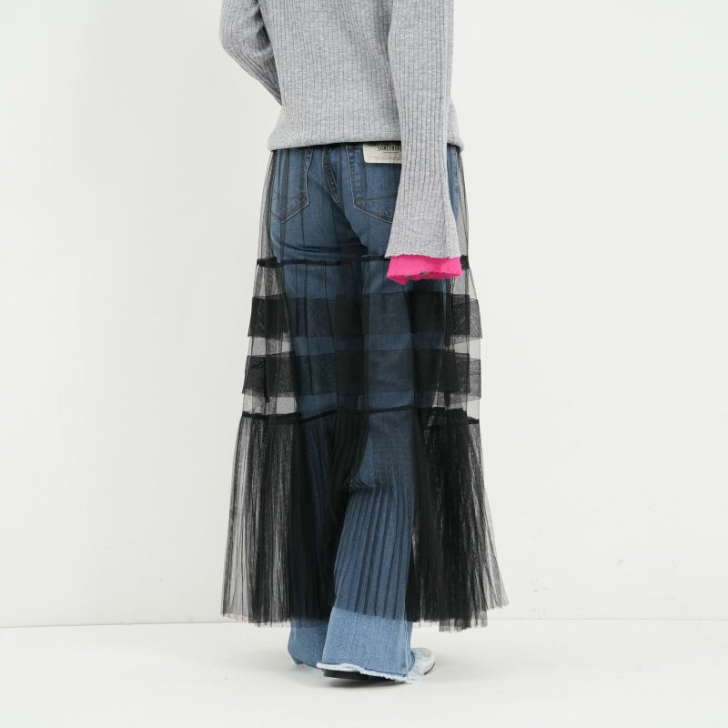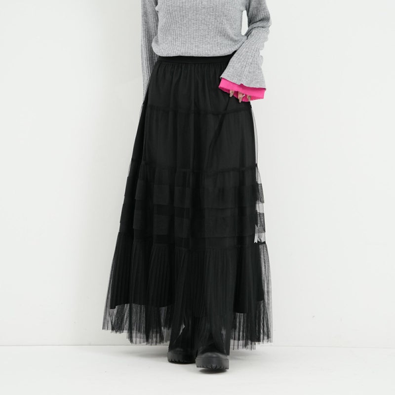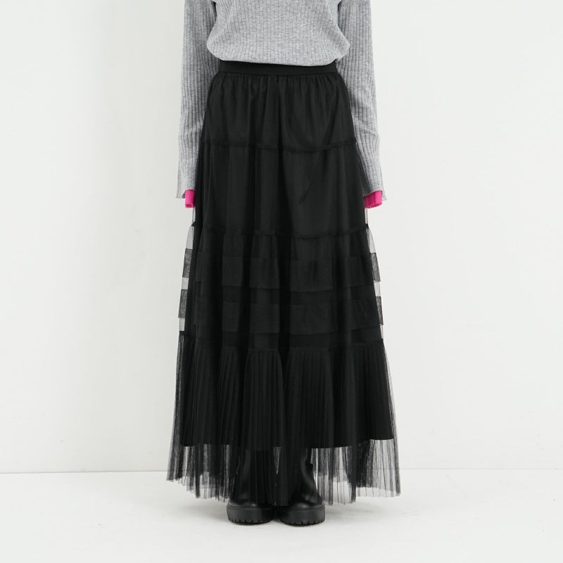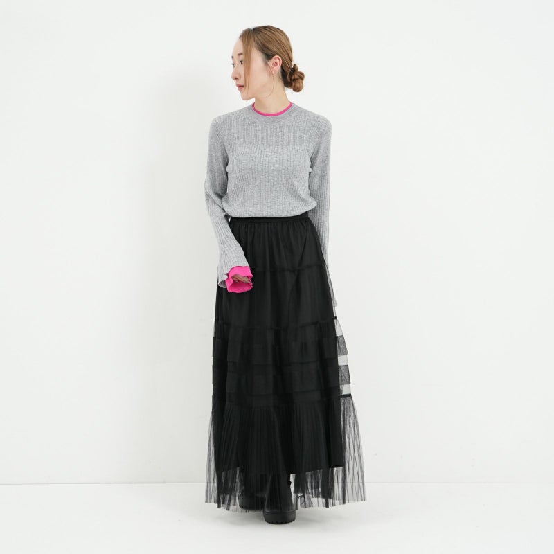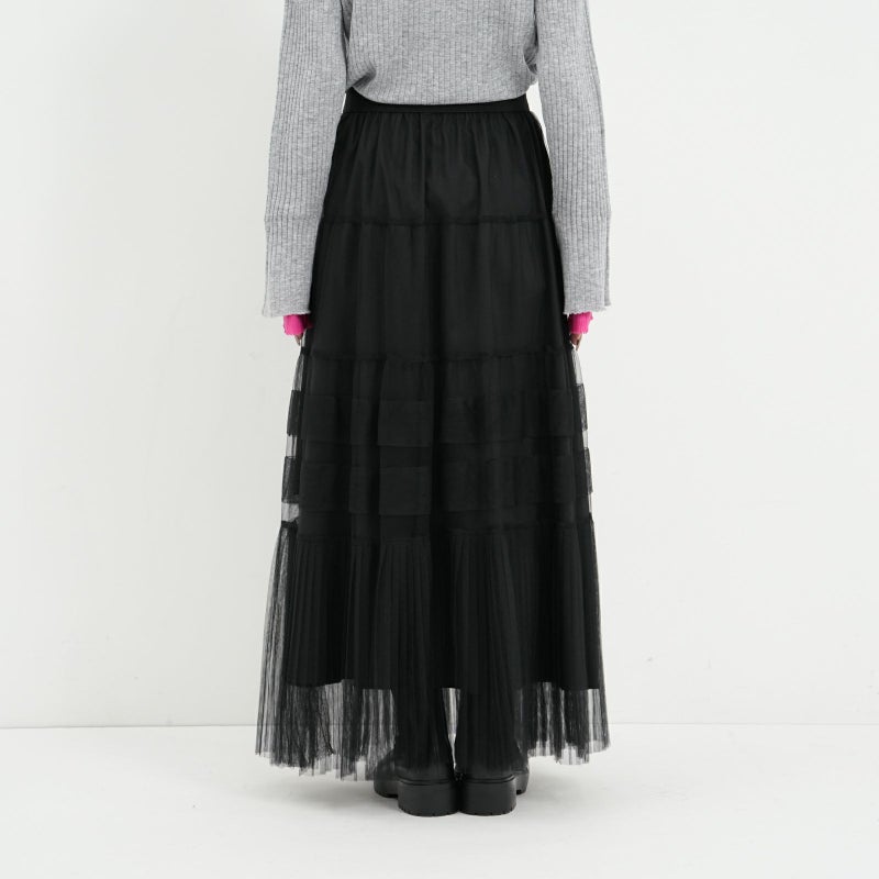 変化をつけたティアードデザインがポイントのチュールスカート。 ペチコートは、ウエストの両サイドのボタンで取り外しが可能。チュールのみをデニムやパンツに合わせたりと、旬なレイヤードスタイルも楽しめます。