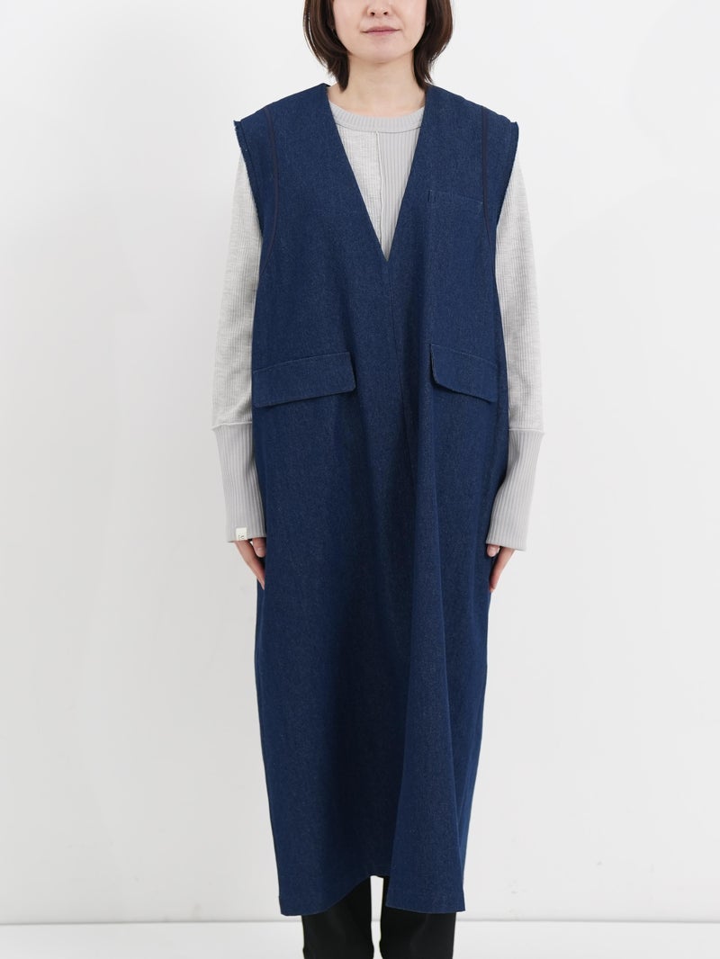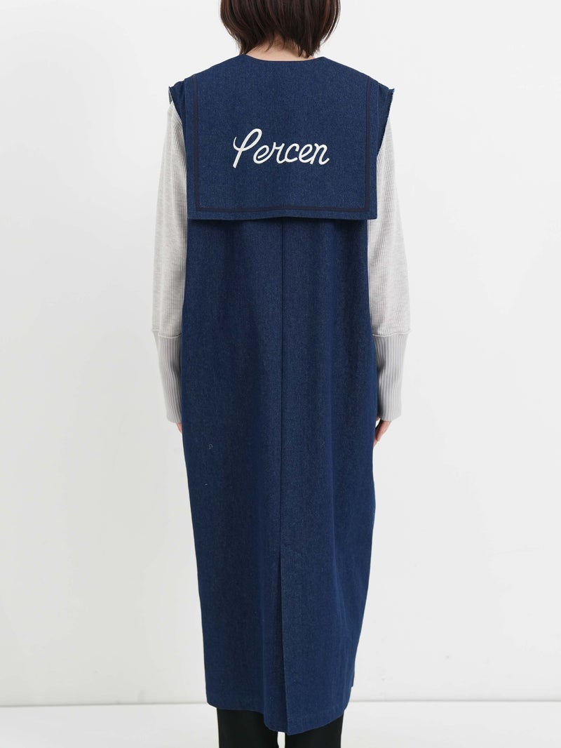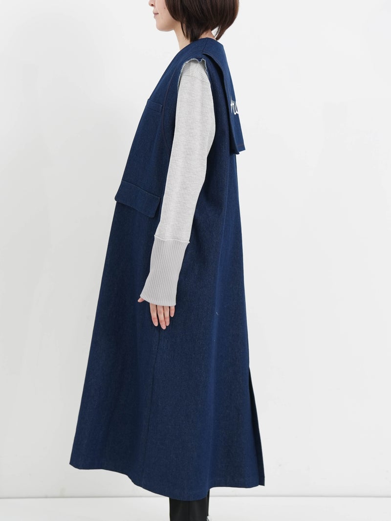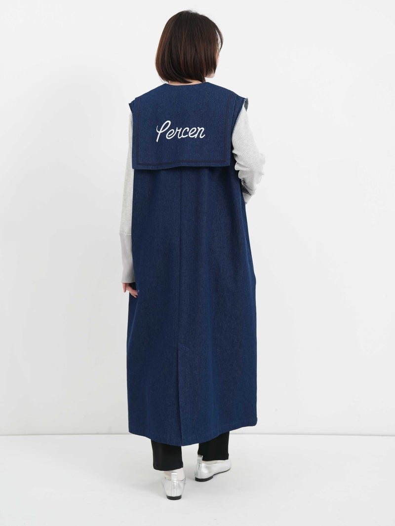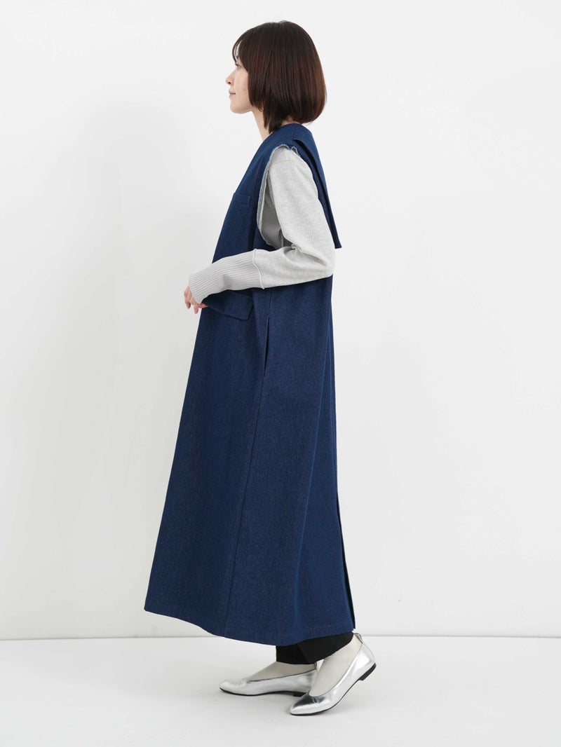 ビッグなセーラーカラーを思わせるデザイン。ミリタリーとマリンを掛け合わせたイメージのワンピースです。シャープなソリッドな素材を使用することで、甘さを抑えた大人のバランスに仕上げました。