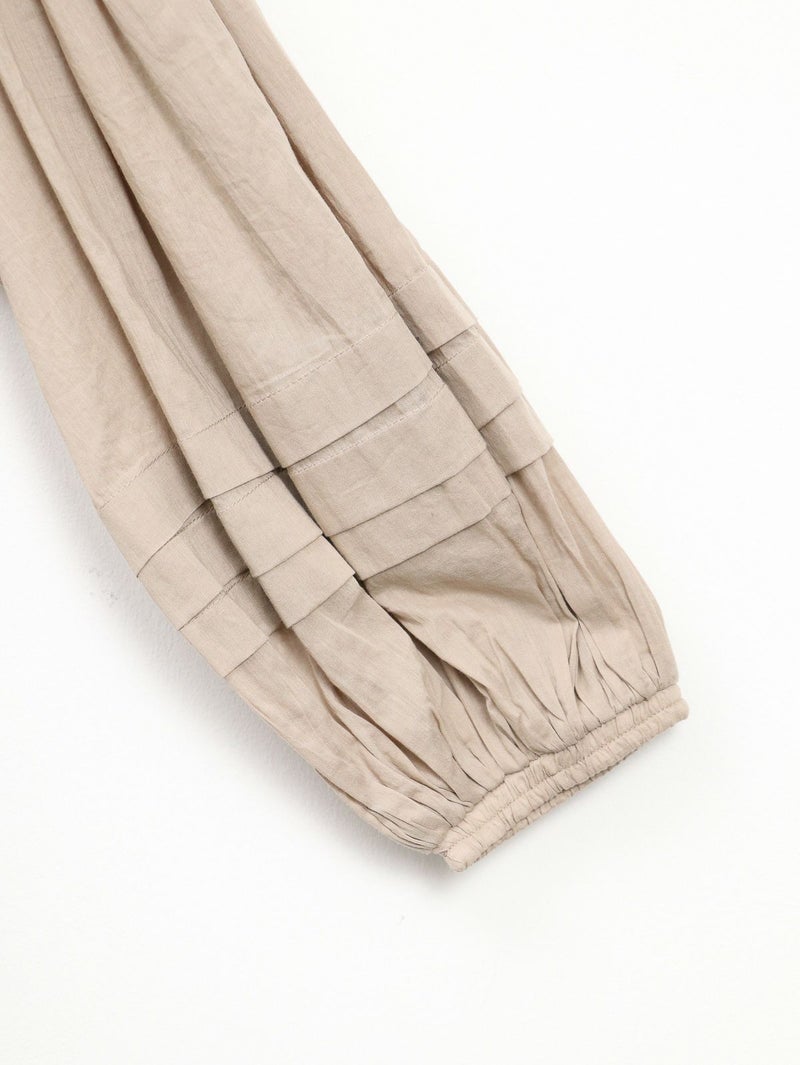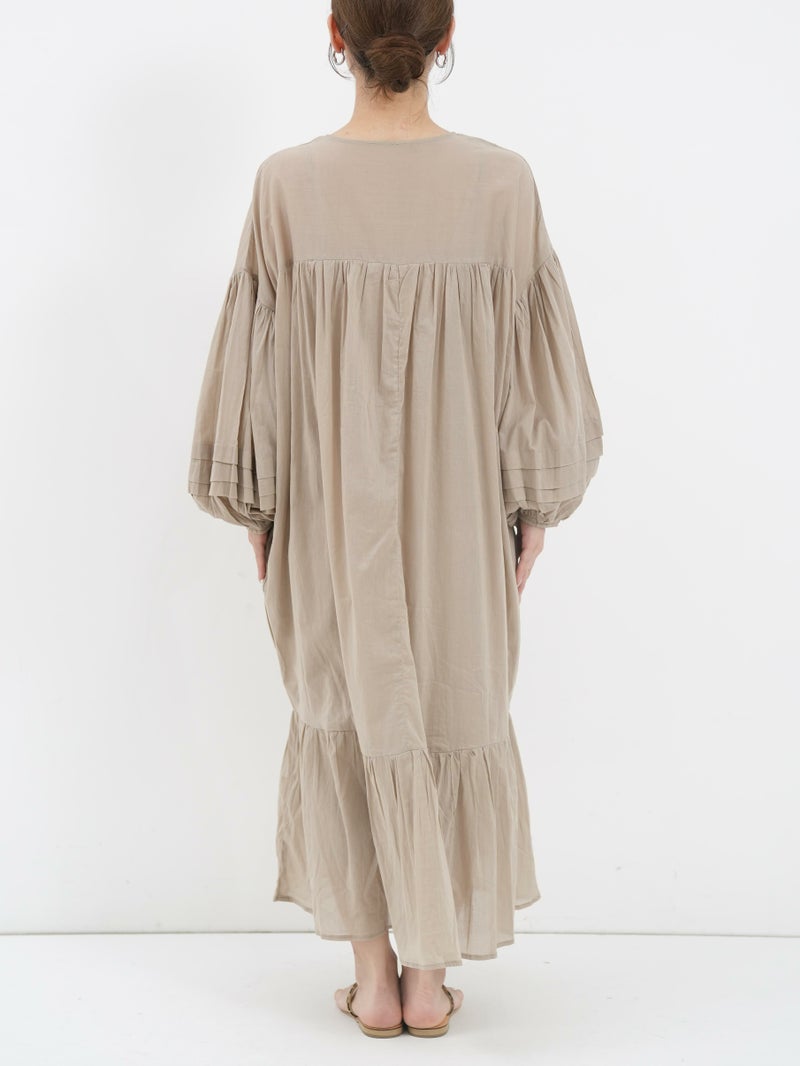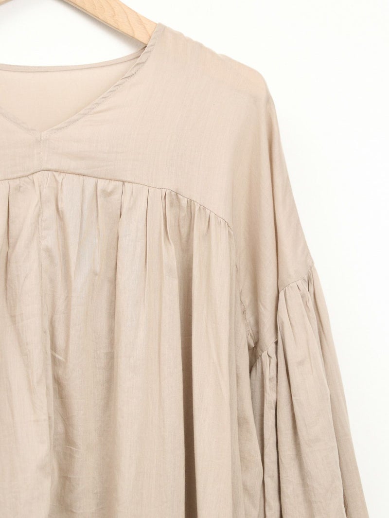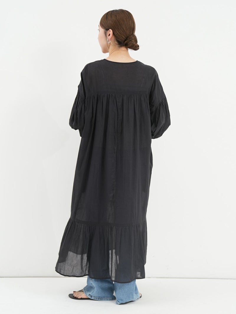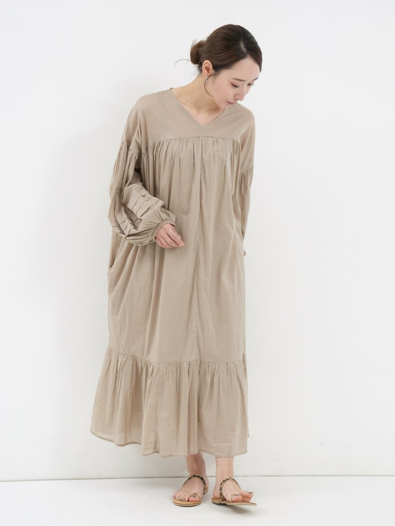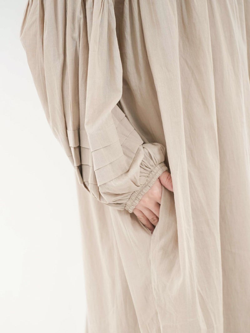 ギャザーが胸元と裾に贅沢に入り、ふんわり広がる女性らしいワンピース。 袖口がゴム仕様なので袖をたくし上げることができ、華やかな印象なバルーンスリーブ。生地は薄くて軽く、肌触りの良いインド綿のコットンボイルを使用。夏から秋にかけて涼しく快適に着ていただけます。 ※インナーワンピース付き。