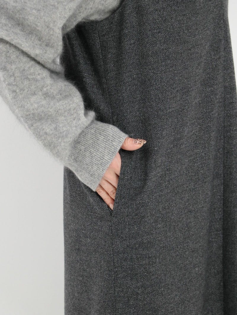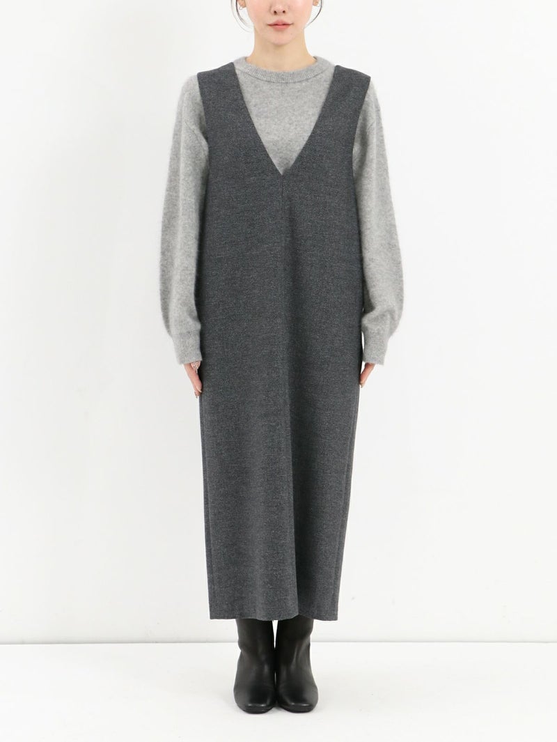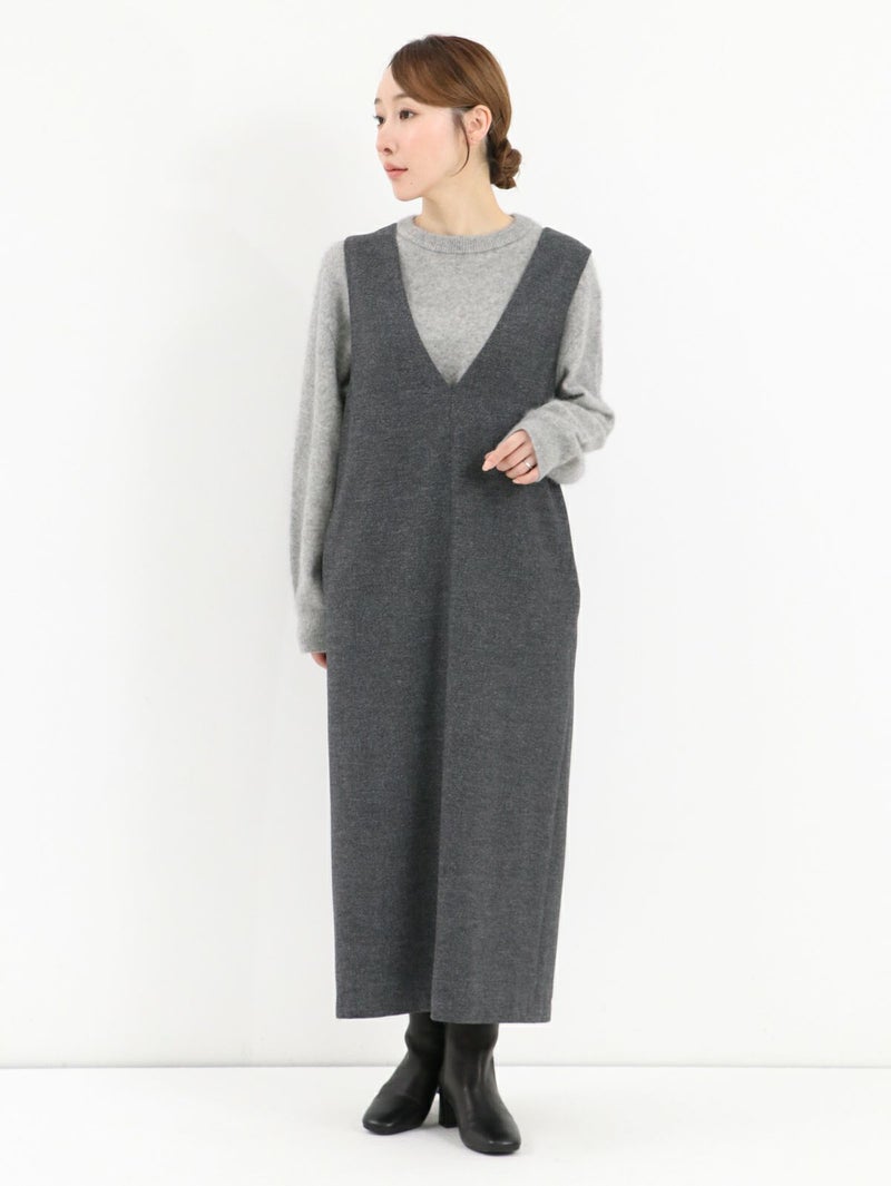 カシミアタッチな着心地が特徴のVネックワンピース。 裏表どちらも起毛させることで、空気を含んだような柔らかさと高い保温性が魅力。顔周りをスッキリと見せてくれるVネックデザインは、インナー次第でキレイめにもカジュアルにも◎