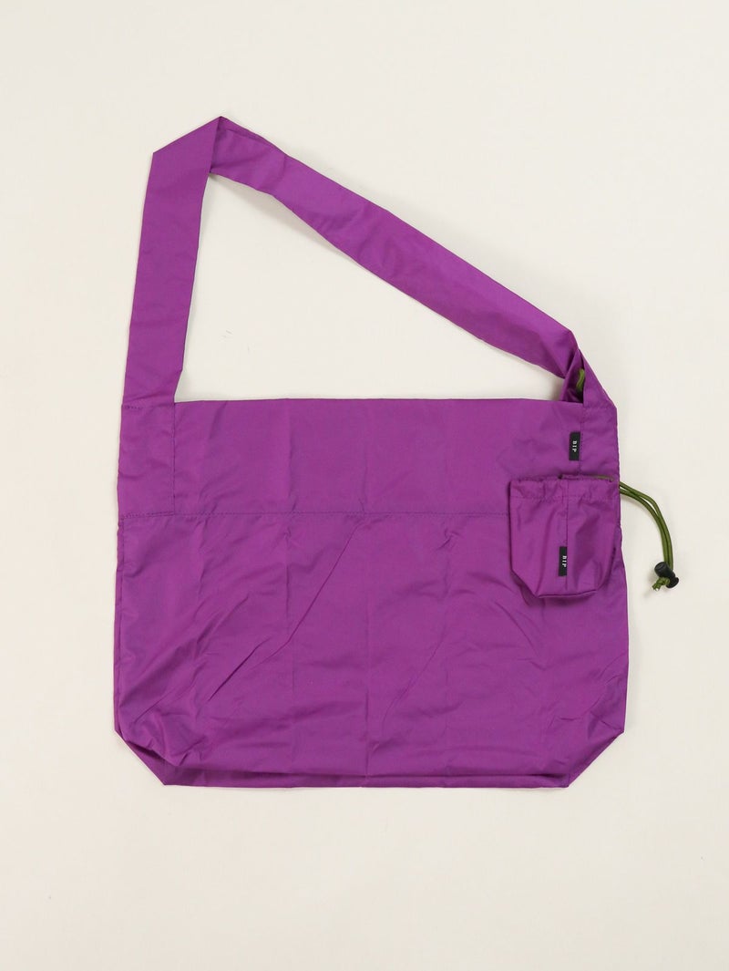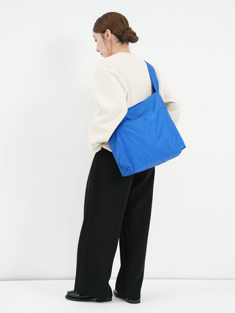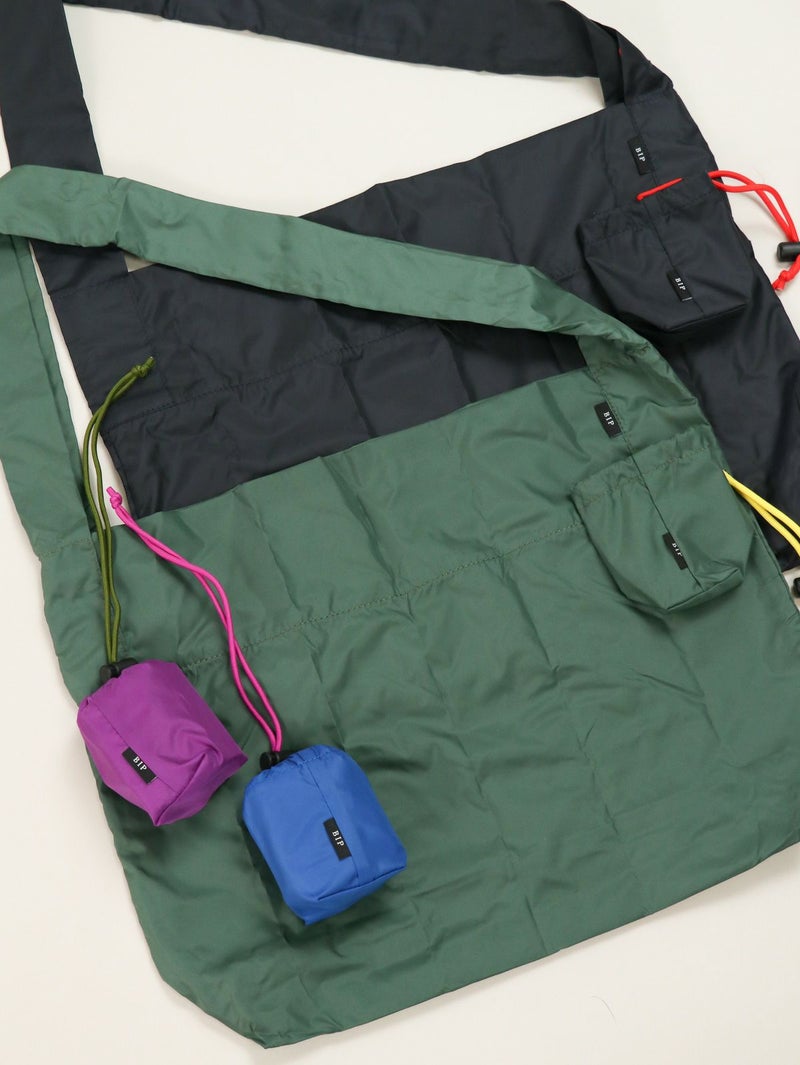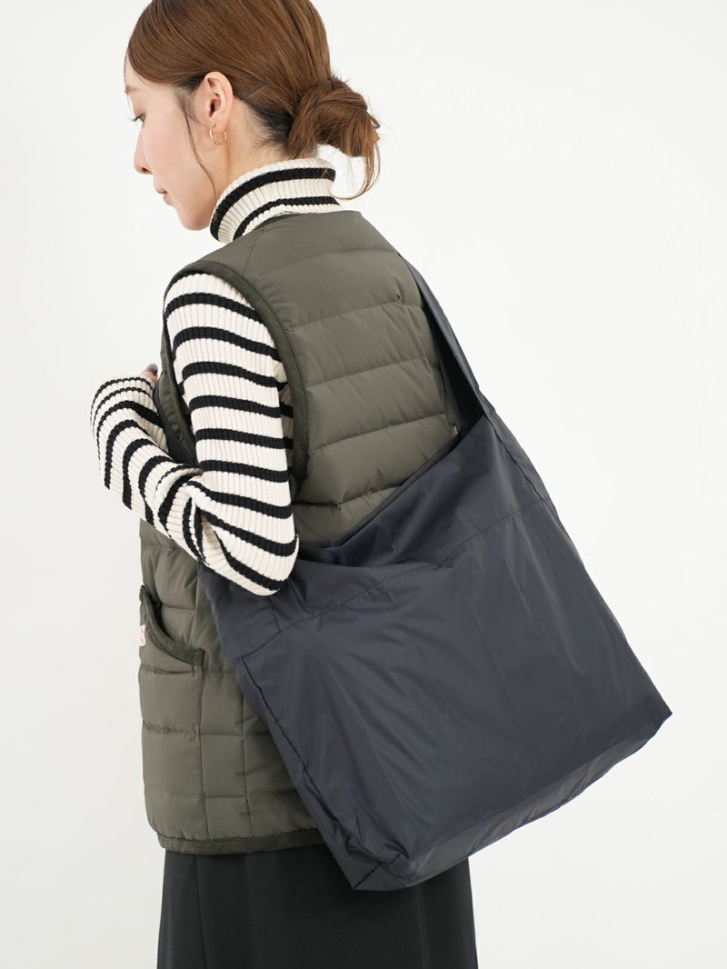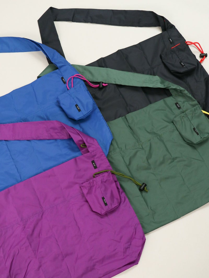 ロニースコッツ先行発売&別注カラーのBAGSINPROGRESS新作バッグ。 小さく折りたたんで付属の巾着袋に収納し、チャームのようにバッグに付けて持ち歩けるパッカブル仕様のエコバッグ。いつでもどこでもサッと取り出して使える便利さが魅力。超軽量でソフトな風合いの高密度ポリエステルタフタを使用。撥水性があり、雨の日も安心してお使いいただけます。