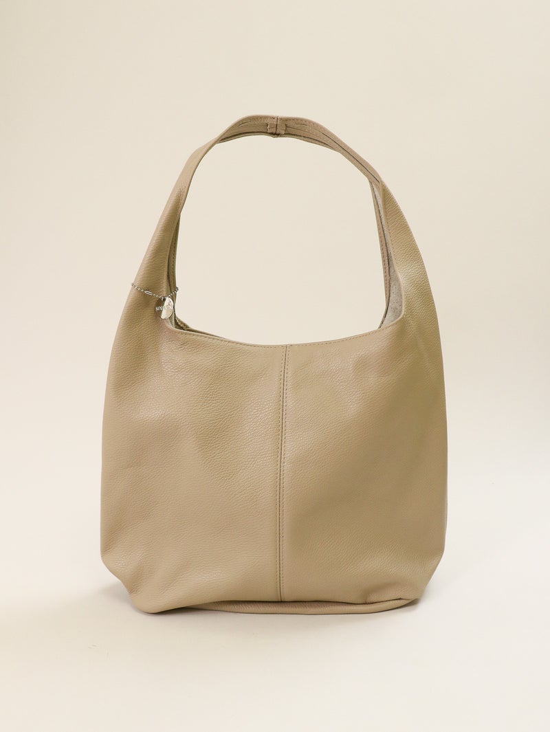 上品なワンハンドルの無駄のないデザインで使い込むほどに風合いが増す、上質なレザーを使用しています。シンプルなフォルムでどんなスタイリングにも馴染むデイリーに取り入れやすいアイテムです。