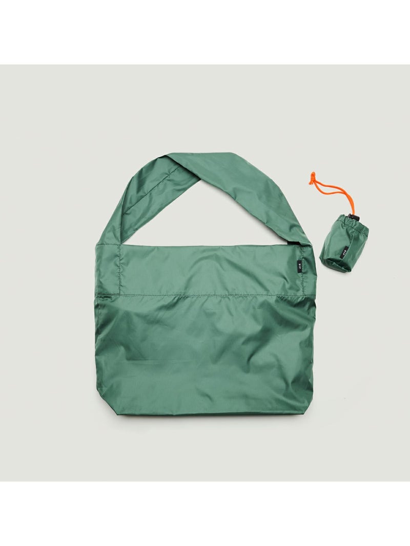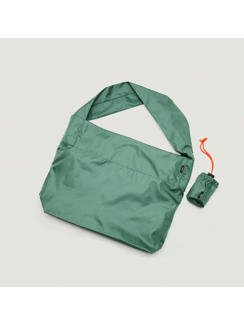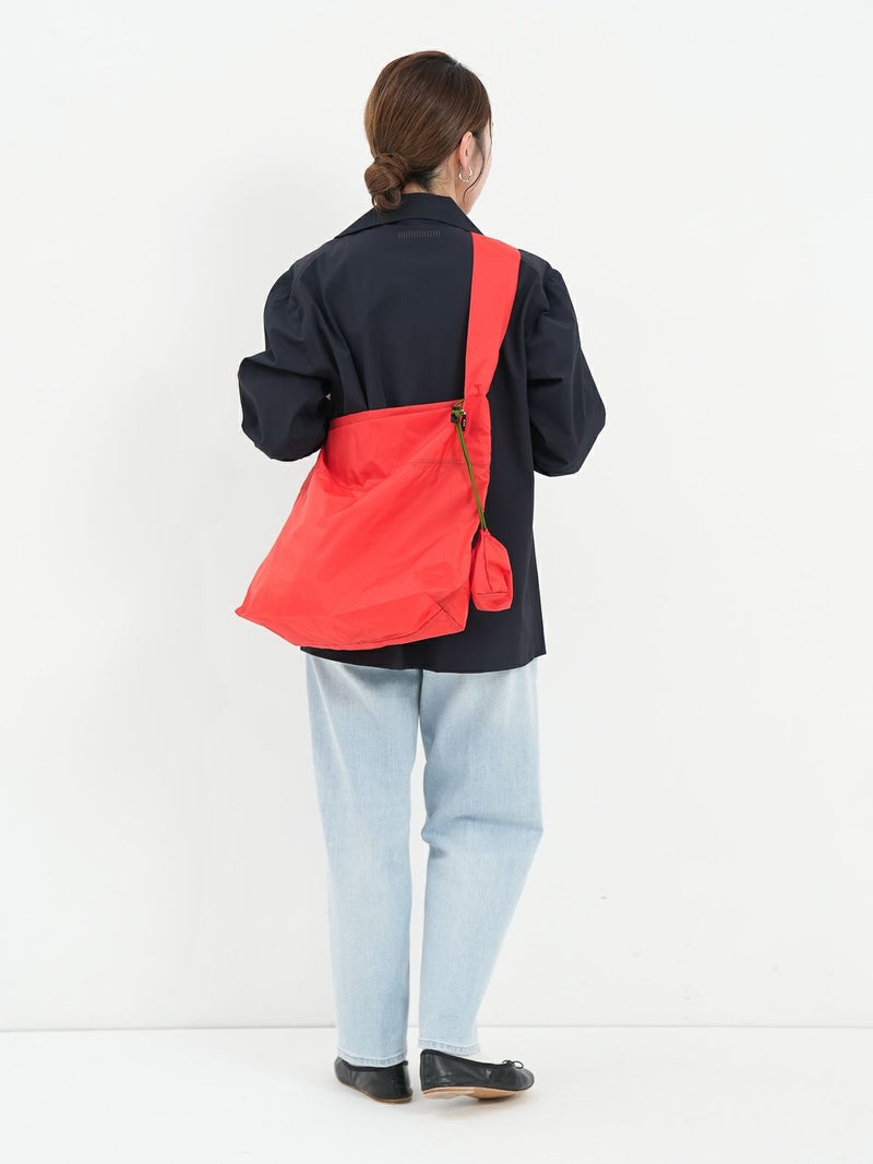 超軽量ポリエステルタフタを使用したパッカブルショルダーバッグ。 小さく折りたたんで付属の巾着袋に収納し、チャームのようにバッグに付けて持ち歩けるパッカブル仕様のエコバッグ。10cm幅の幅広なショルダーストラップで、マチもしっかりあるので容量もたっぷり。バッグ内側に、巾着をくくりつけるループ付き。超軽量でソフトな風合いの高密度ポリエステルタフタを使用。