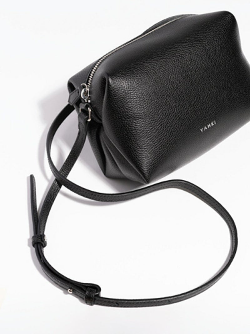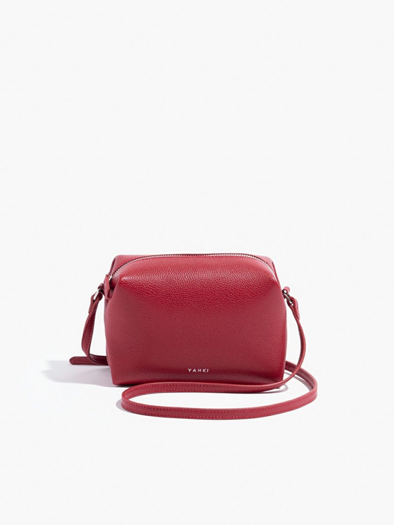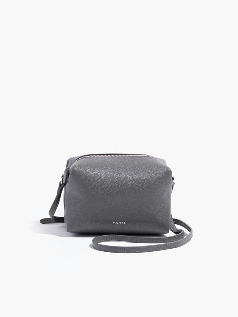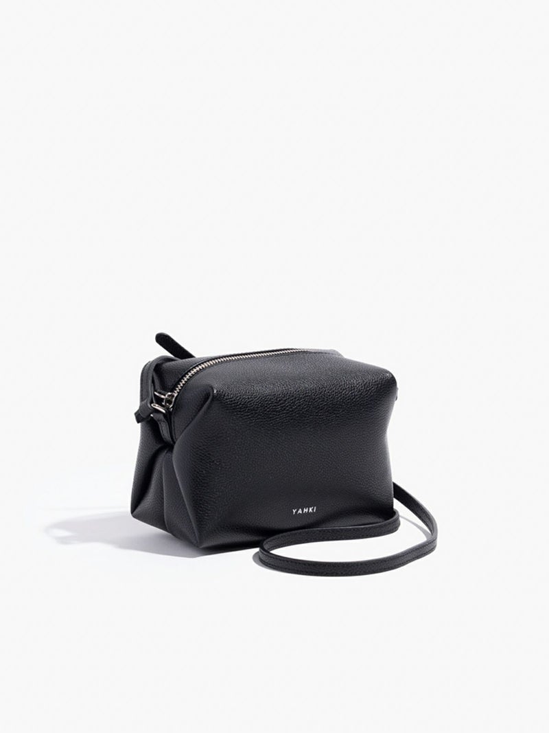 SOFT SHRINK レザーのクロスボディバッグ。 すっきりとしたフォルムに、両サイドの縫製がさりげないアクセントになったミニショルダーです。 一見シンプルながら、立体感のあるシルエットがどの角度から見ても美しく、ミニマルな中に個性が宿るデザインです。 本体にはシボ感のある床革を使用。軽量で肩掛けしやすく、コンパクトながらスマートフォンやミニ財布、鍵などの必需品がしっかり収まります。 ストラップは長さ調節が可能で、斜めがけにも対応。毎日のスタイルに寄り添う、飽きのこないベーシックアイテムです。
