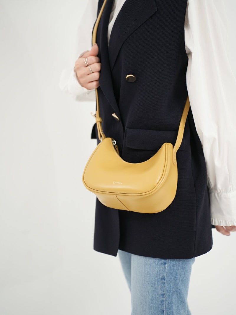 W FACEレザーのクロスボディバッグ。 ころんと丸みのあるフォルムが愛らしい2WAY仕様です。 ストラップは2本にセパレートしており、繋げればクロスボディ、分けて付け替えればハンドバッグとして使用できる、ユニークで機能的な仕組みが魅力です。 ミニサイズながらしっかりとマチがあり、スマートフォンやミニ財布、リップなどのデイリーアイテムを無理なく収納可能。 本体には艶感のある床革を使用し、コンパクトでも印象に残る存在感を放ちます。 軽やかに持ててスタイリングのアクセントにもなる、普段使いにぴったりのアイテムです。