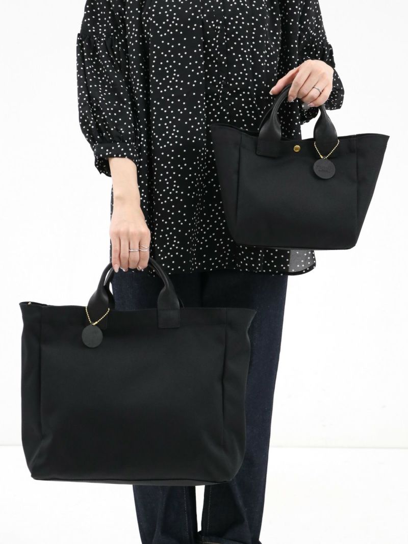 ちょこっと持ちに大活躍のtan tan別注バッグ。 軽くて耐久性に優れたコーデュラナイロン。ハンドル部分は使うたびに風合いの増すプエブロレザーを使用。バッグの中身が見えないようスナップボタン付いているのが嬉しいポイント。黒はどんなコーディネートにもマッチするのでこれ一つあれば間違い無しのアイテムです。