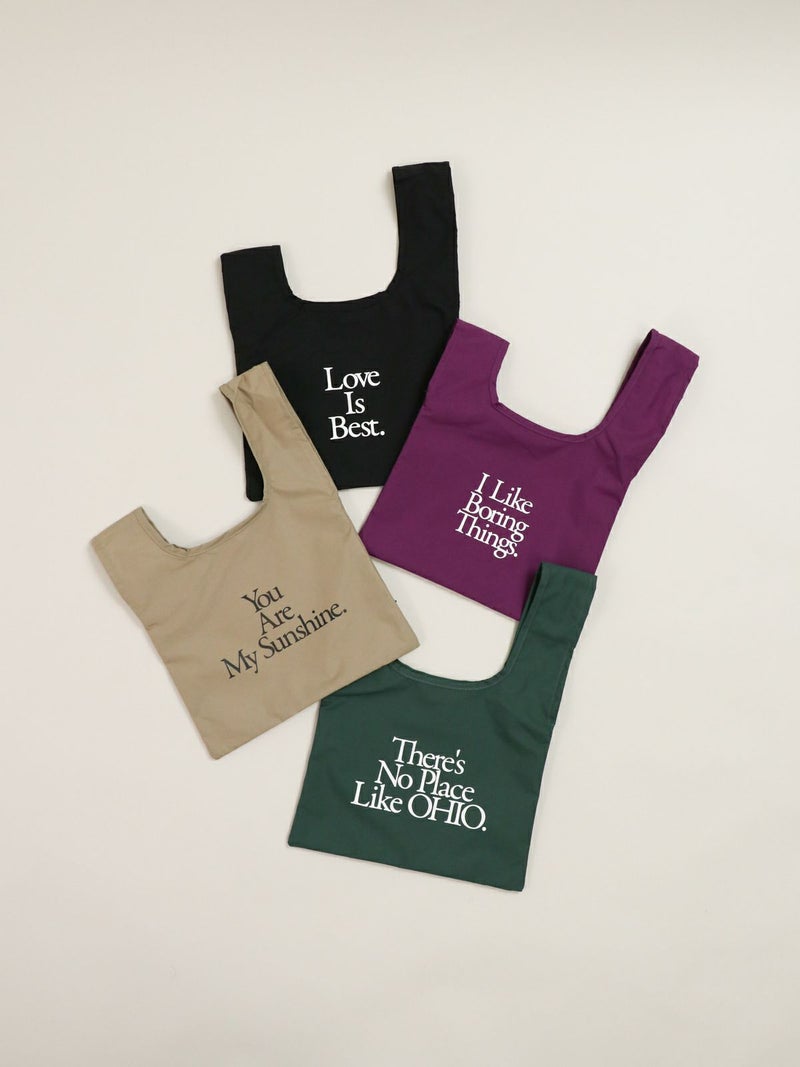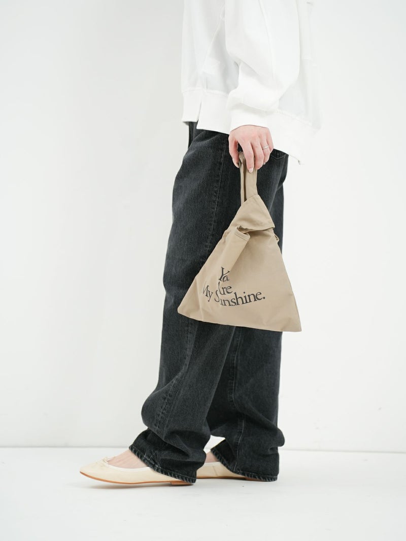 左右を絡ませるタイプの持ち手がポイントのハンドバッグ。 手首にしっくりくる太めのハンドルとプリントでカラーバリエーションを楽しめます。