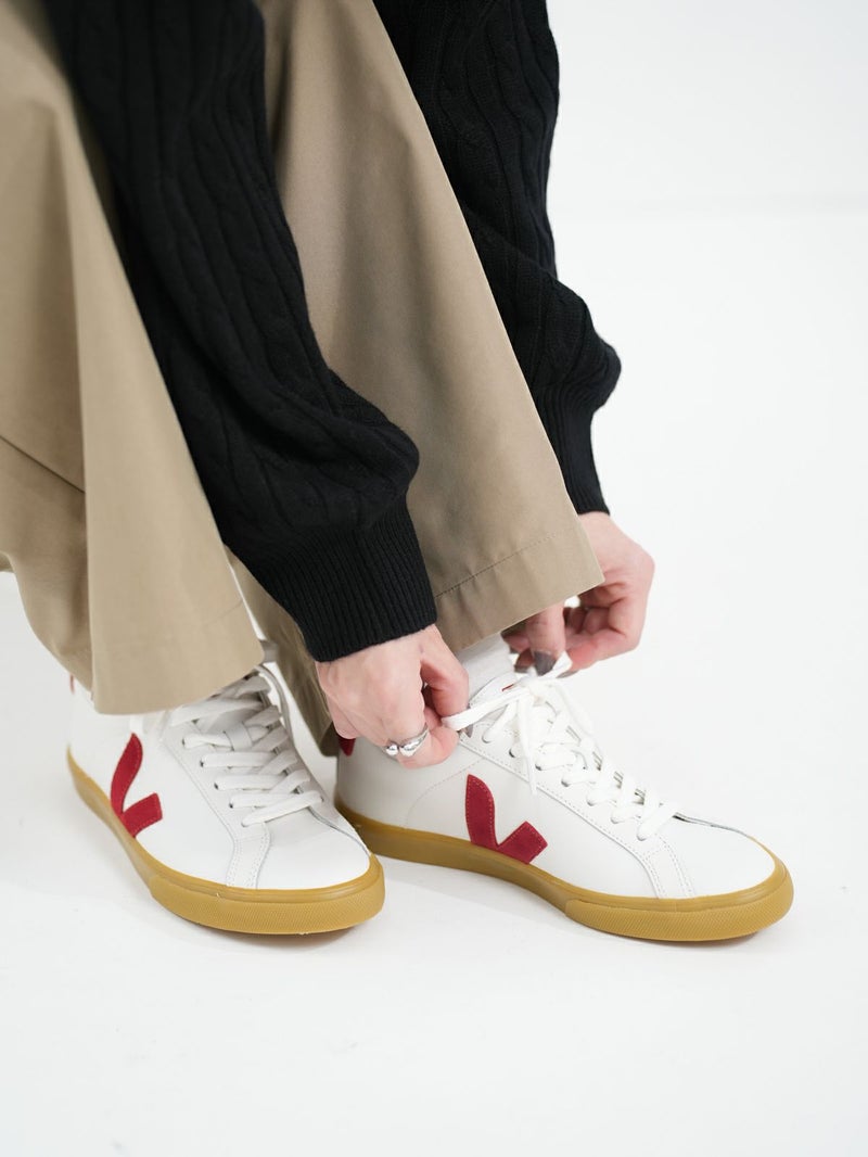 【 VEJA / ベジャ 】 フランス発のサステナブルブランド。 フェアトレードによるオーガニックコットンや天然ラバー、リサイクルされた素材やペットボトルを再生した生地を使うなど、 物づくりの抱える大きな問題に真剣に向き合い、新しい取り組みでファッショナブルなシューズを生産しています。