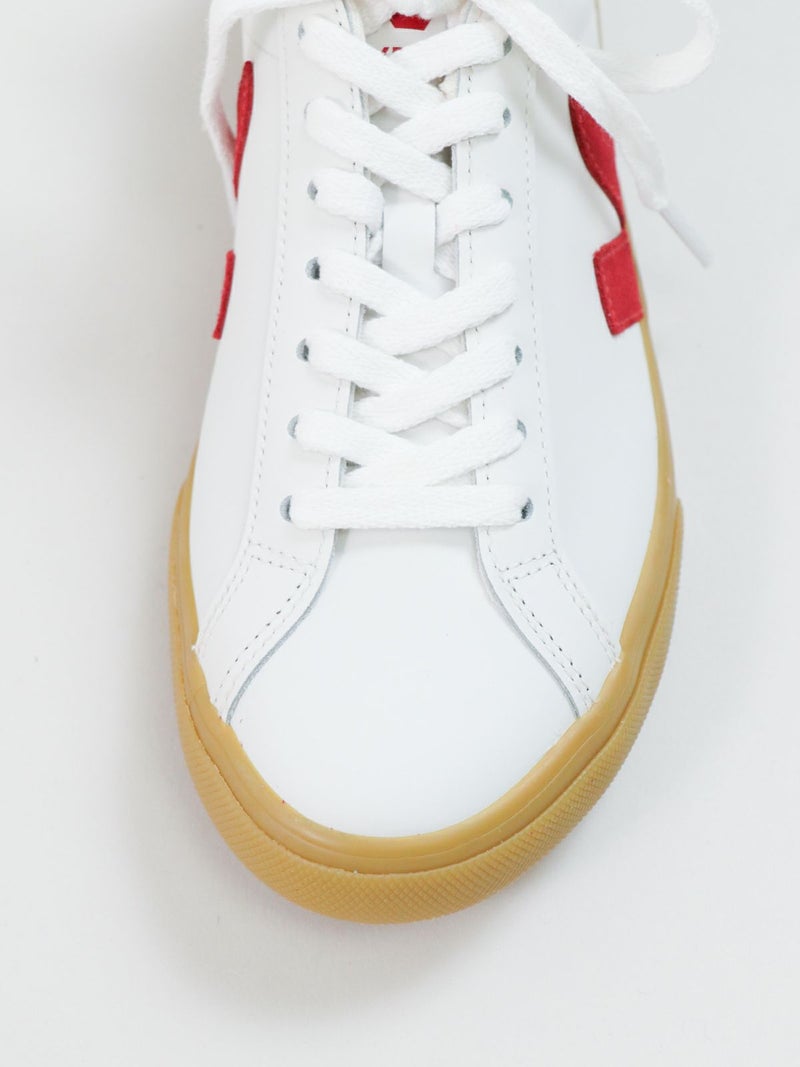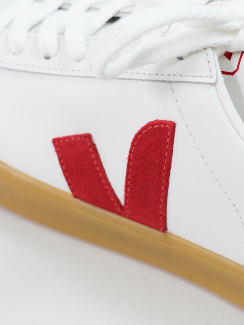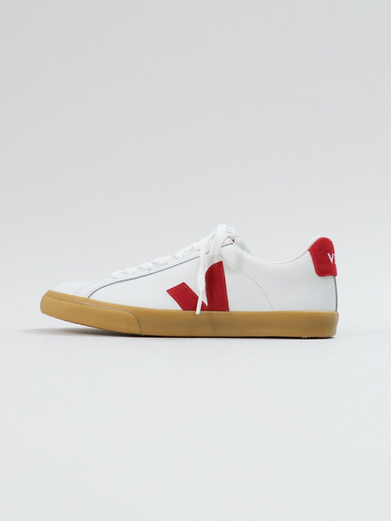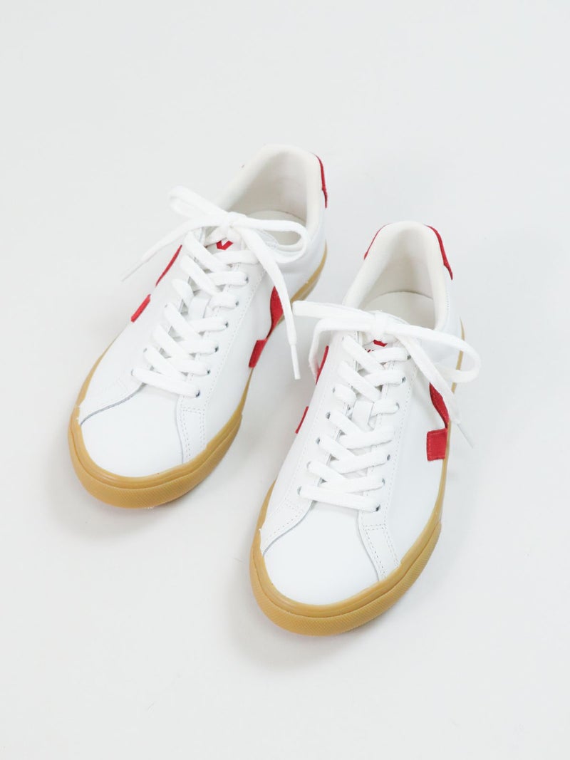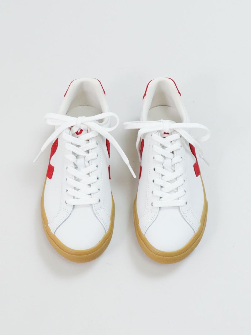 白のボディに赤のロゴが目を惹く「ESPLAR LOGO」 カジュアルからキレイめまで幅広いスタイリングに合わせられる一足です。シンプルなスタイリングにプラスするだけでアクセントに。