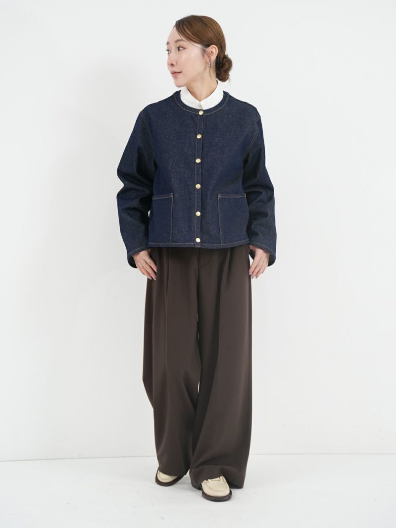 デニムスタイルに合わせて、きちんと感を加えた着こなしもおすすめです。