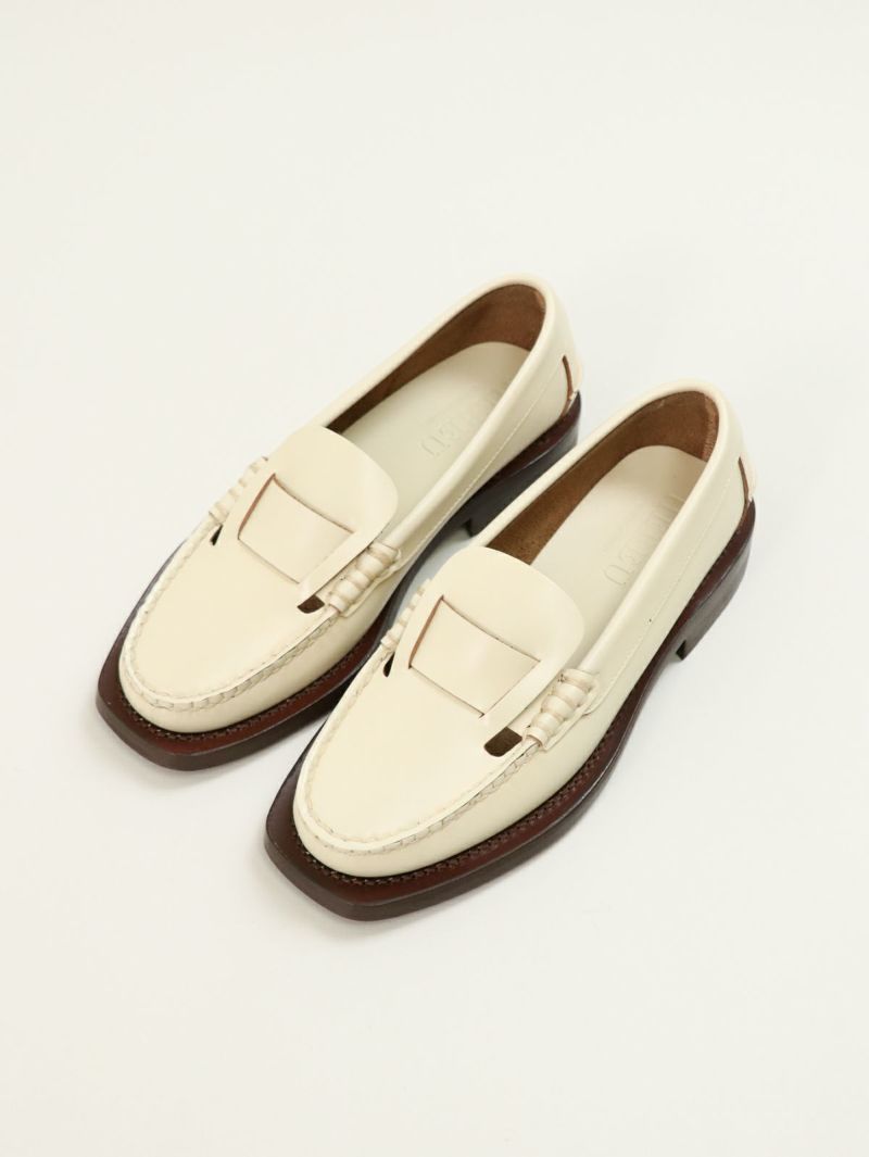 シニュー インターレースディテール スリッポン ローファー (カスタード)。