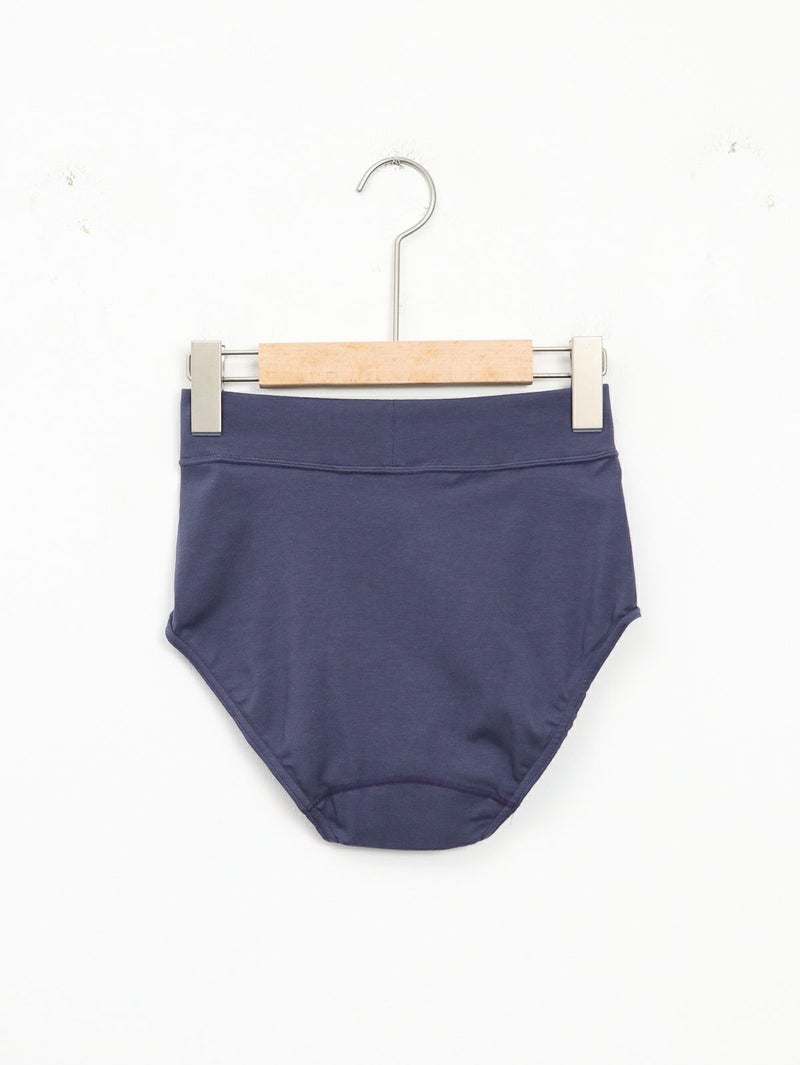 オーガニックコットンのベア天に、天然成分由来の抗菌防臭加工(グレープフルーツ種子から抽出)が施された生地「citoratec」を使用したショーツ。 ほどよくストレッチが効き、包み込まれる安心感があります。植物を思わせる爽やかな色は、どの色を組み合わせてもかわいいです。ウエストはゴムを使わず、お腹を覆う丈で包み込まれるようなシルエットに。クロッチを2重にし、サニタリーショーツとしても使用していただけます。