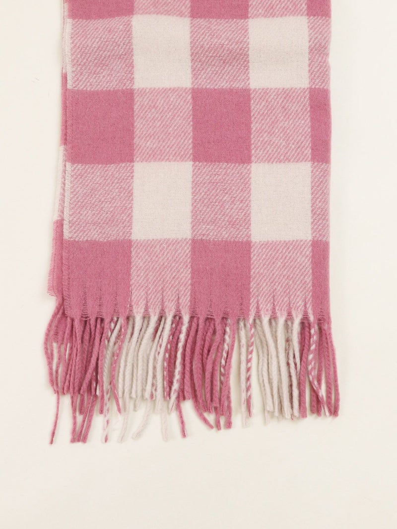 ボリュームのある素材で、肩掛けや軽いアウター感覚でつかえる1枚。 カラーは暖かみのあるピンクのチェック。 ポリエステル素材で洗濯しやすいのも嬉しいポイント◎