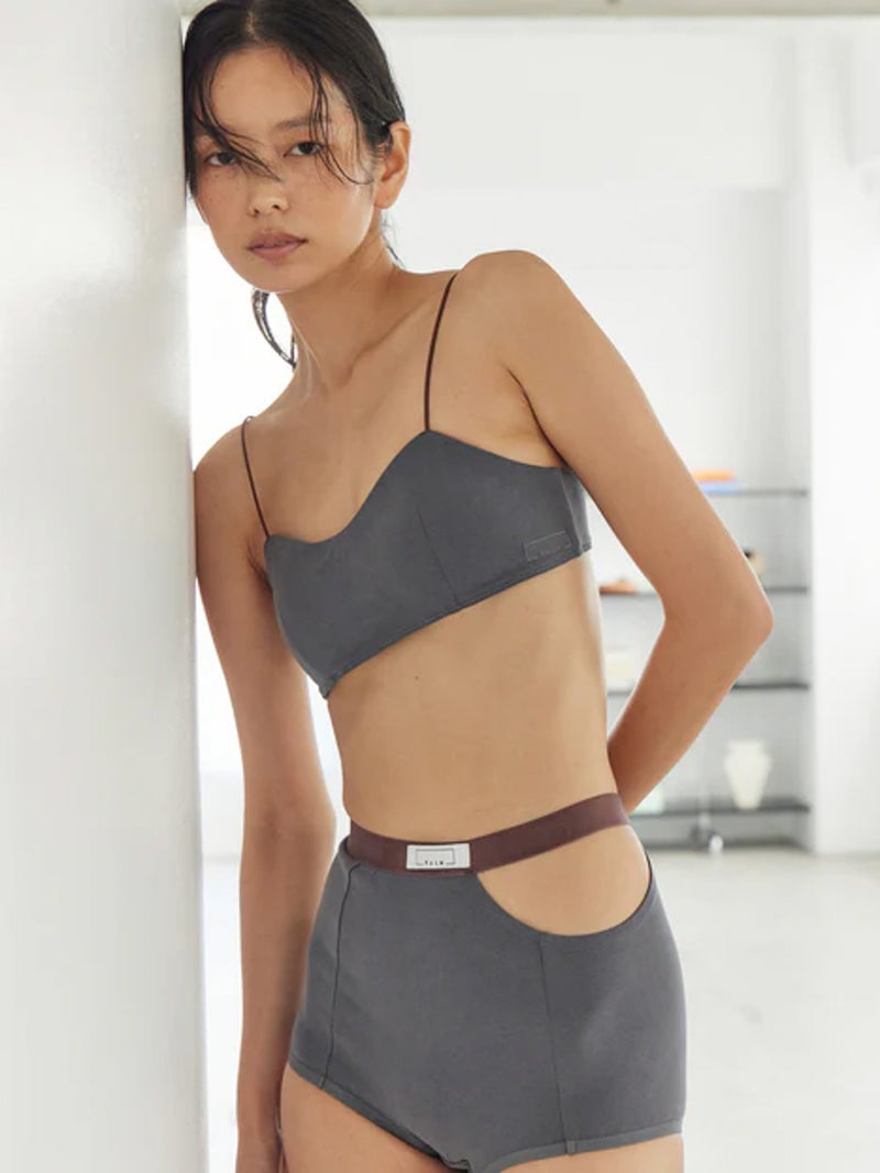 配色デザインがポイントのブラトップ。 高いストレッチ性を持つベア天竺素材を使用し、やわらかく快適な着心地を実現。デイリーに取り入れやすい一枚です。配色のコントラストとさりげない肌見せにこだわり、華奢なストラップで下着見えしにくいデザインに。HIGHWAIST SHORTS(PLM2602)とのセット着用も可能で、統一感のあるスタイリングが楽しめます。