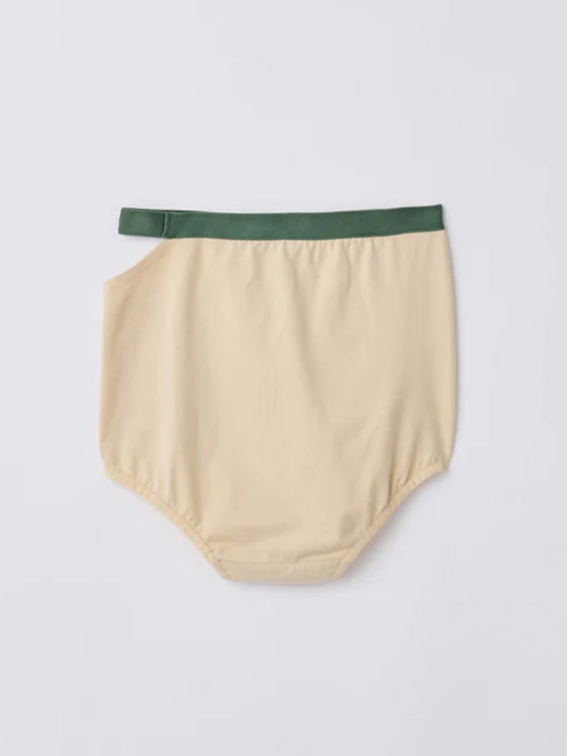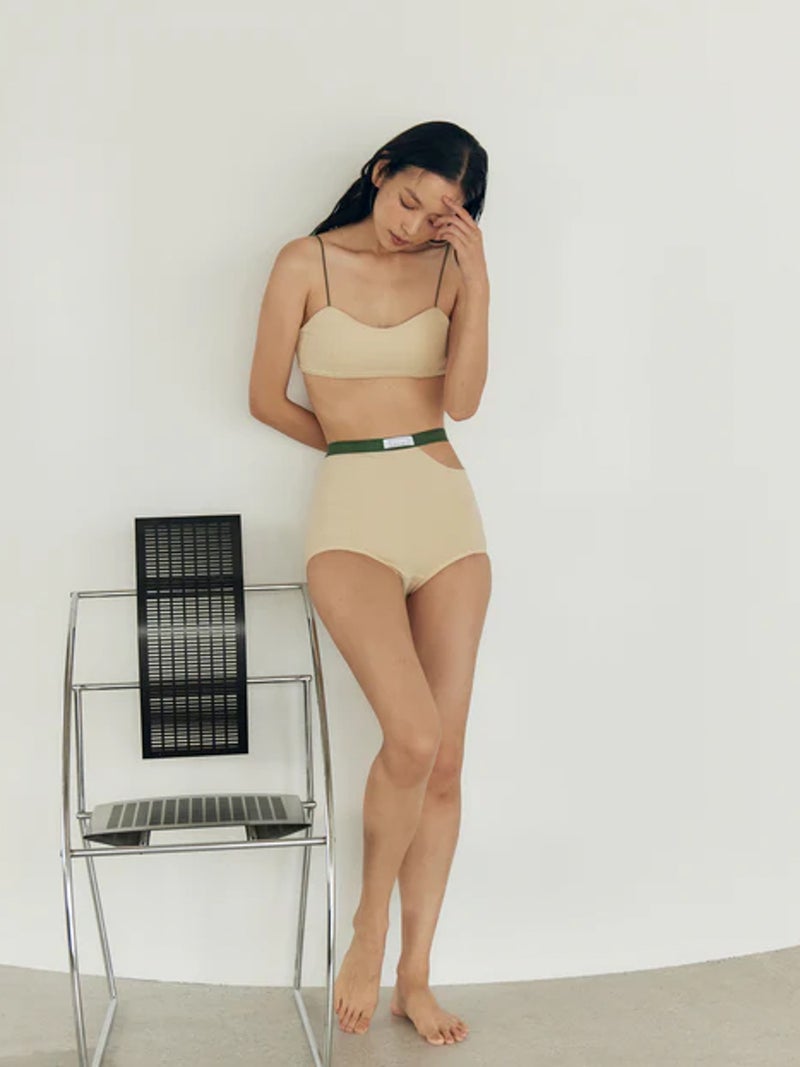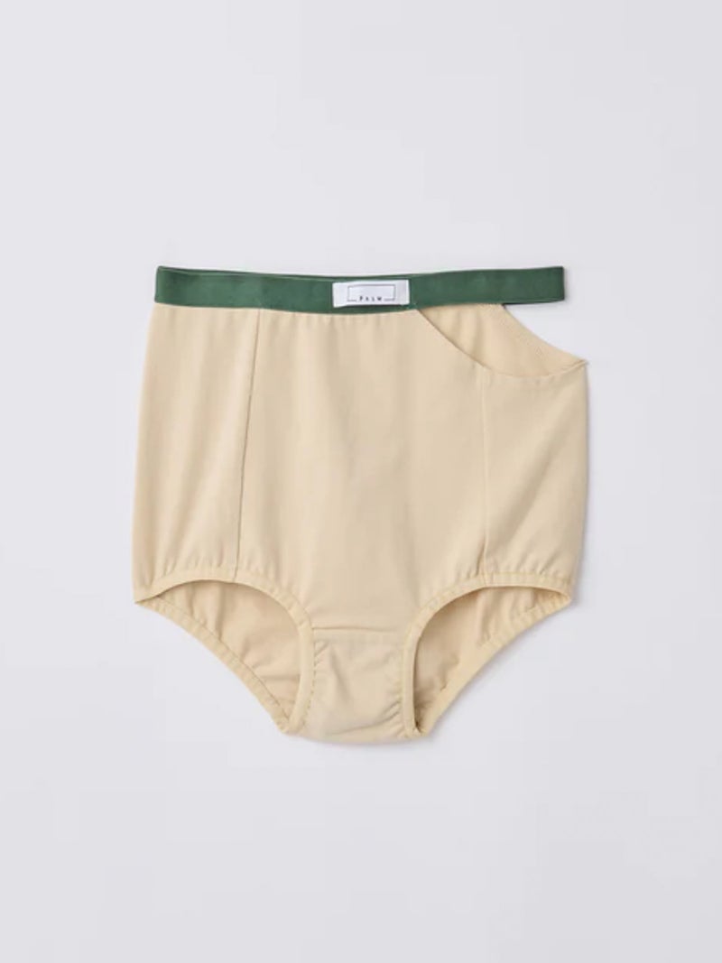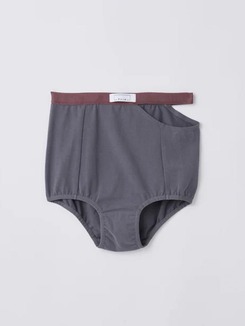 配色デザインがアクセントのハイウエストショーツ。 高いストレッチ性を持つベア天竺素材を使用し、やわらかく快適な穿き心地に仕上げた一枚。デイリーに取り入れやすいアイテムです。ハイウエスト仕様で安心感がありながら、さりげない肌見せが楽しめるデザイン。配色のコントラストがポイントになり、THIN STRAP BRA(PLM2601)とのセット着用も可能です。