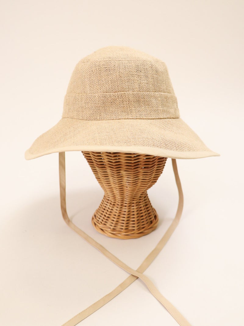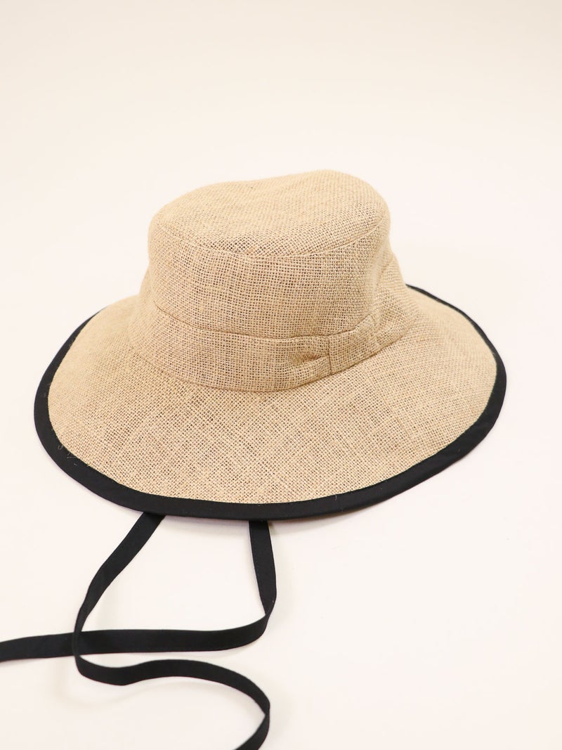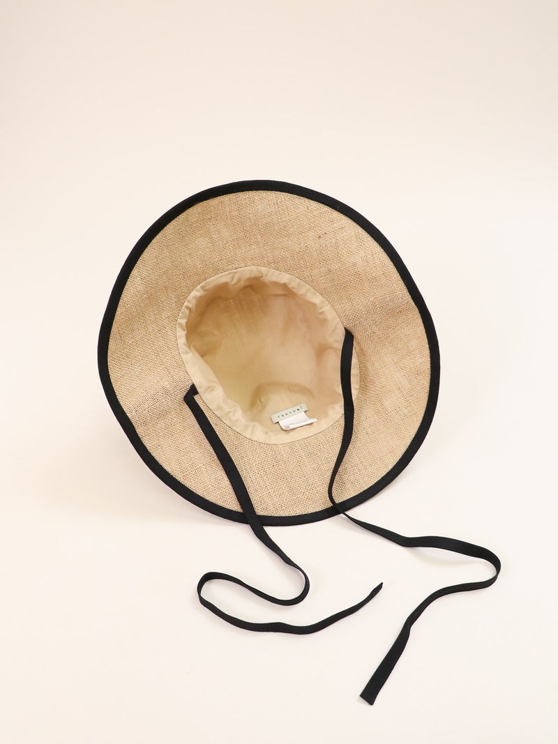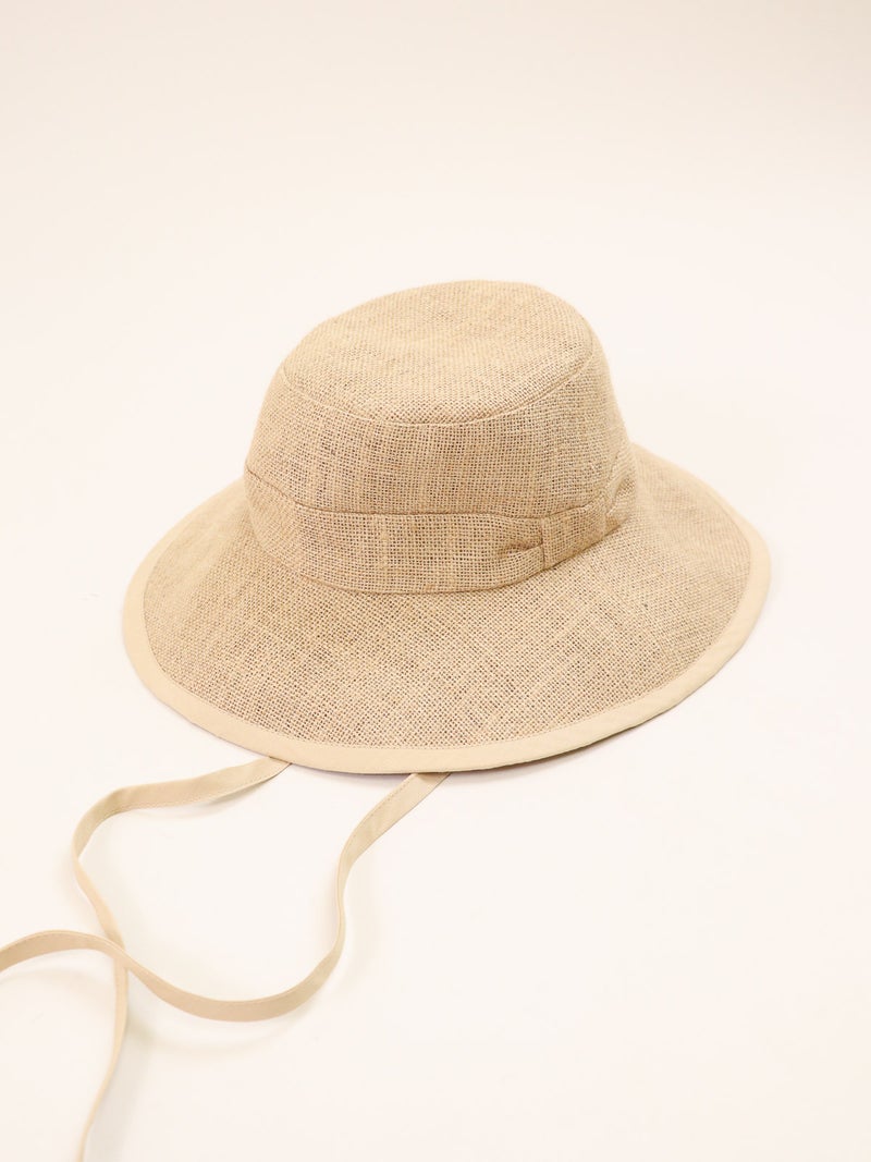 ツバ縁のパイピングが顔周りを引き締めるジュートハット。 ナチュラルな風合いの中に都会的なエッセンスが加わり、カジュアルになりすぎず「きれいめ」な印象を演出。 長めのリボンはそのまま垂らしたり、あご下で結んだりと、その日の気分に合わせたアレンジが可能です。 しっかりと日差しを遮るツバの広さがありながら、軽やかな被り心地でストレスを感じさせません。 夏のワンピーススタイルからデニムスタイルまで、幅広く活躍する頼れる一点です。