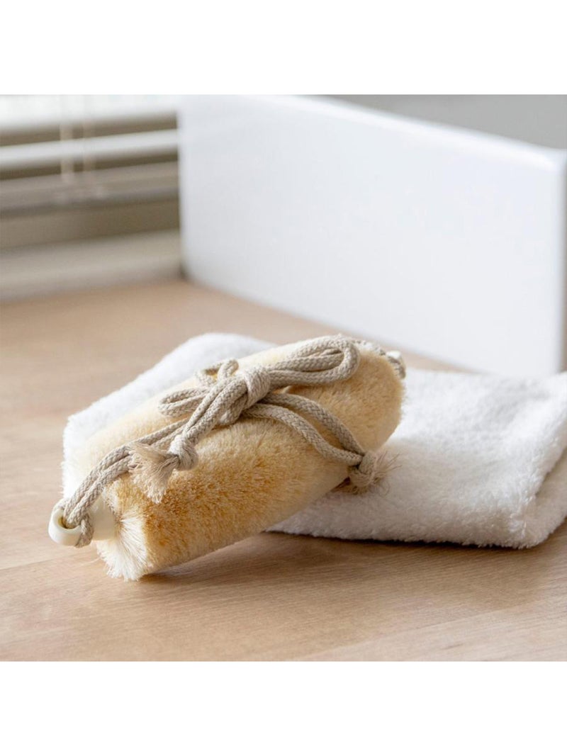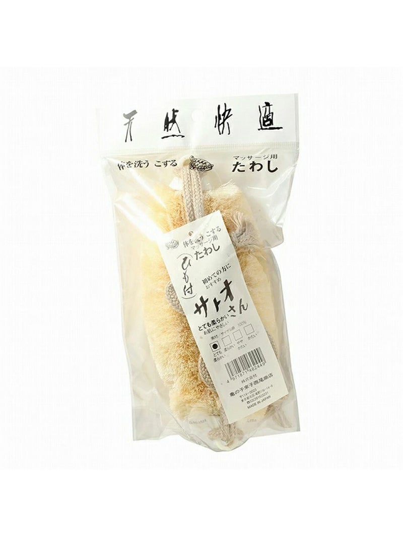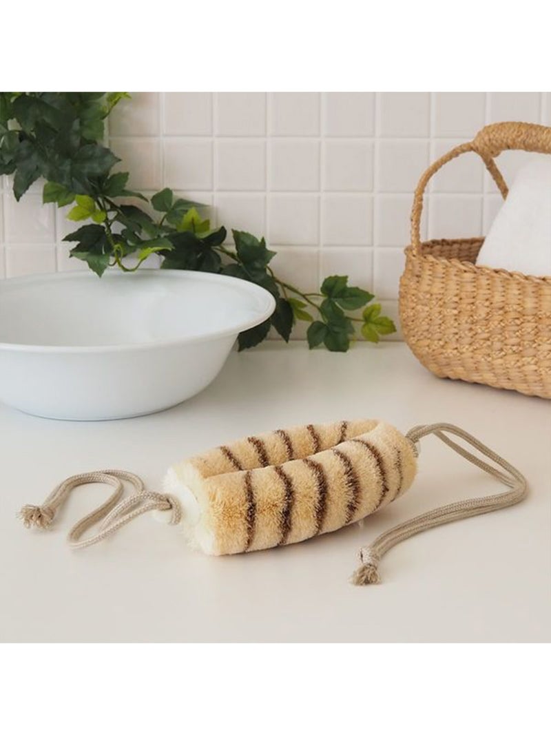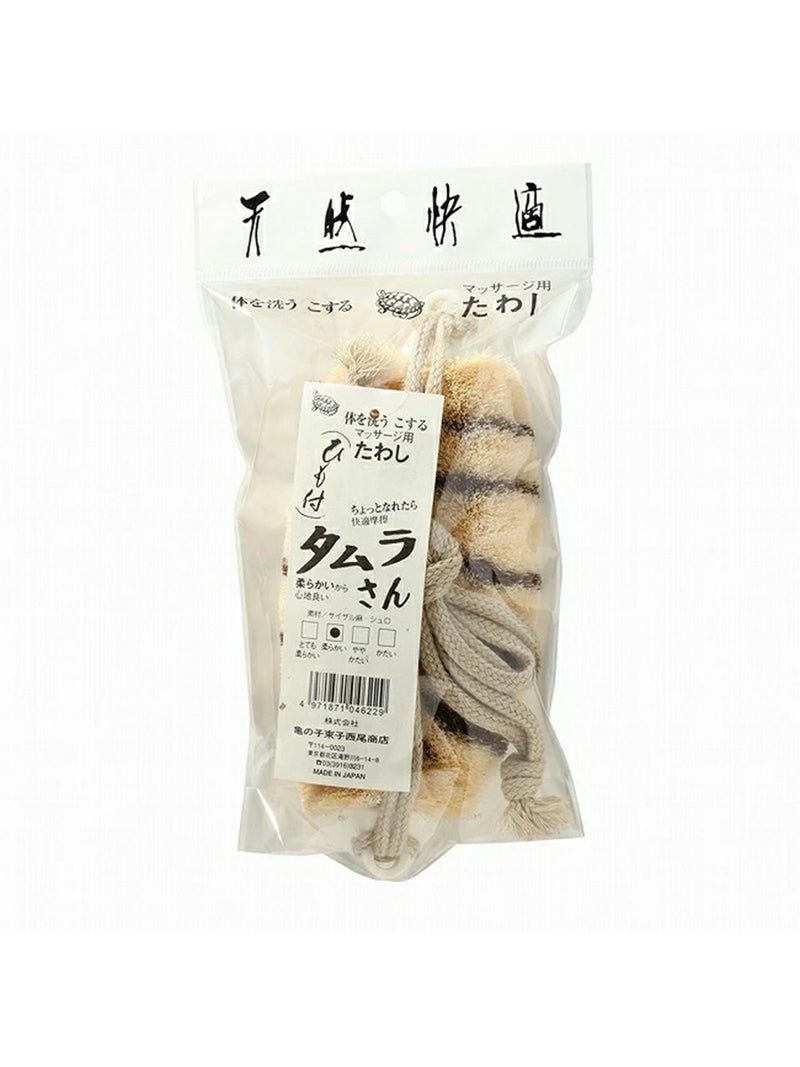 背中までしっかり届く紐付きタイプのボディたわし。 手が届きにくい部分も簡単に洗えます。肌をやさしく刺激しながら血行を促し、毎日のバスタイムを”整える時間”に。