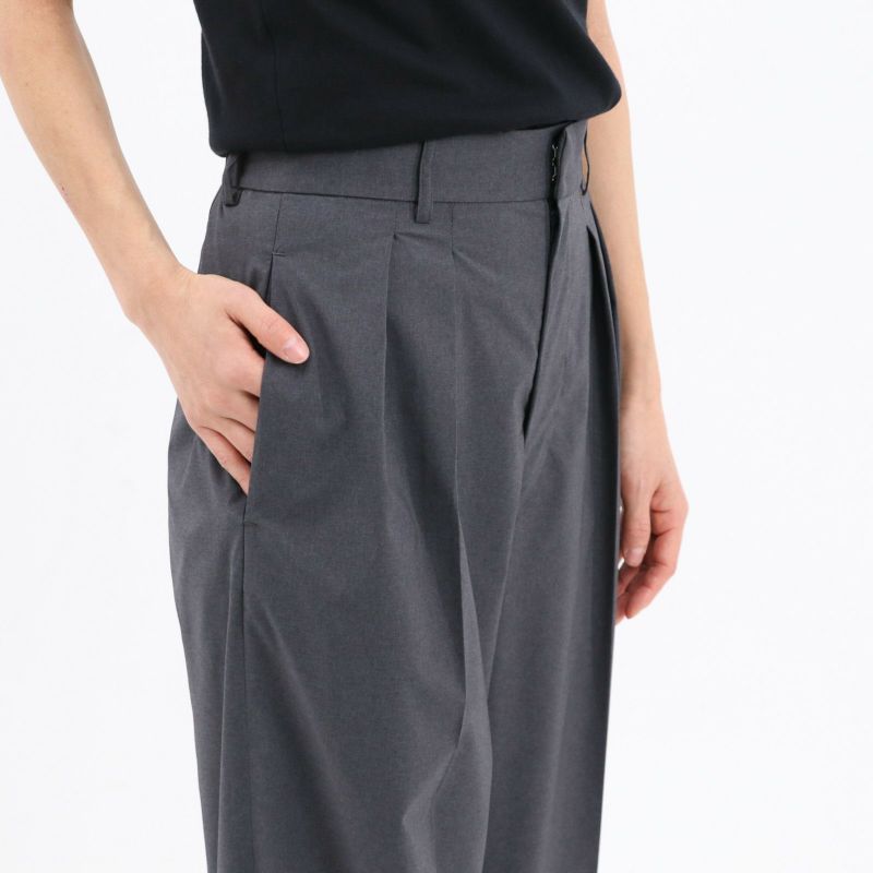 AQUAFITSのストレートパンツ。 ポリエステル100%素材で、軽い着心地。2タックシルエットで、キレイめにもカジュアルにも使えるボトムです。