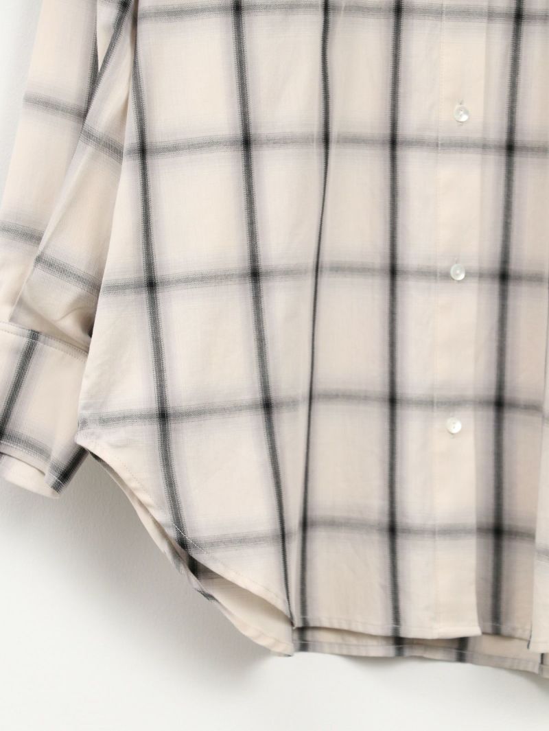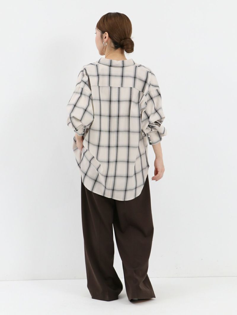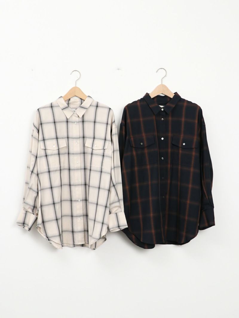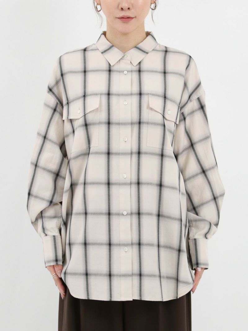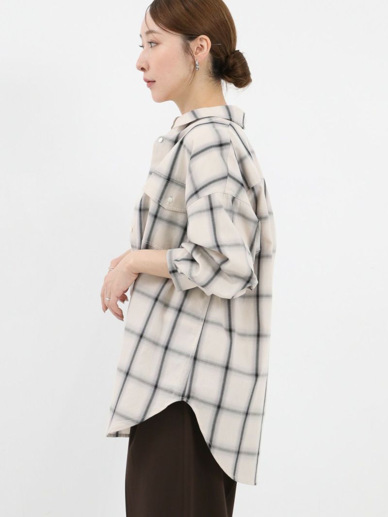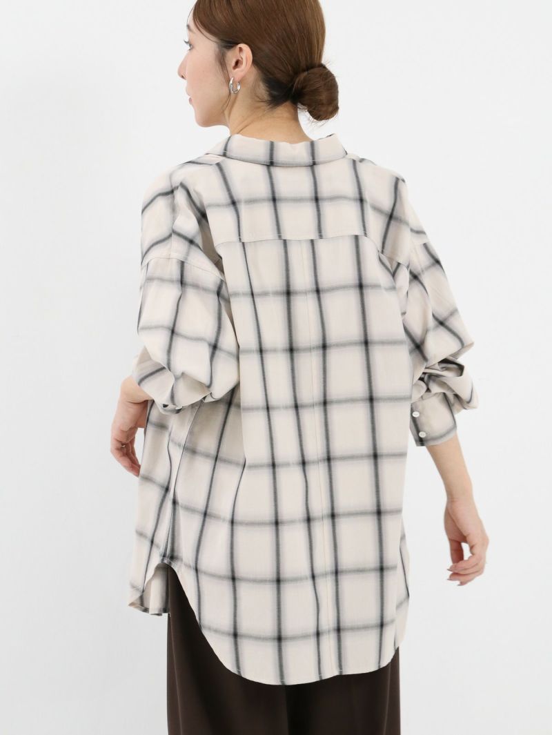 落ち着いたカラーのオンブレチェックシャツは大人の女性にぴったりなトレンドアイテム。柔らかく落ち感ある生地はカジュアルながらも洗練された雰囲気に。暑い時期からタンクトップなどにさらっと羽織って、大人カジュアルなコーディネートがおススメです。