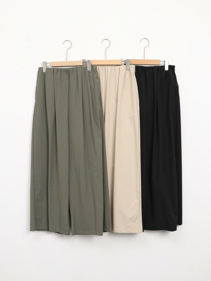 撥水加工、ウォッシャブル、紫外線防止と高機能なACUTA定番のギャザーワイドパンツ。 ストレッチ性もあり、ウエストギャザーでノンストレスな履き心地です。きれいなシルエットでオケージョンシーンからカジュアルまで幅広く活躍します。