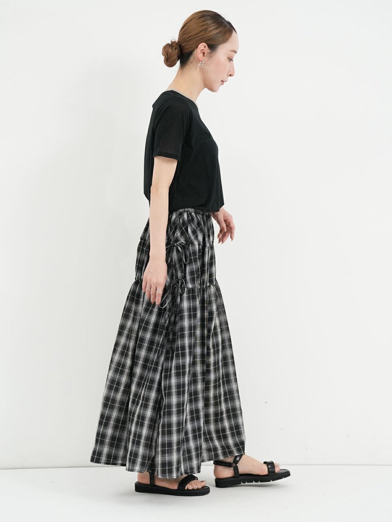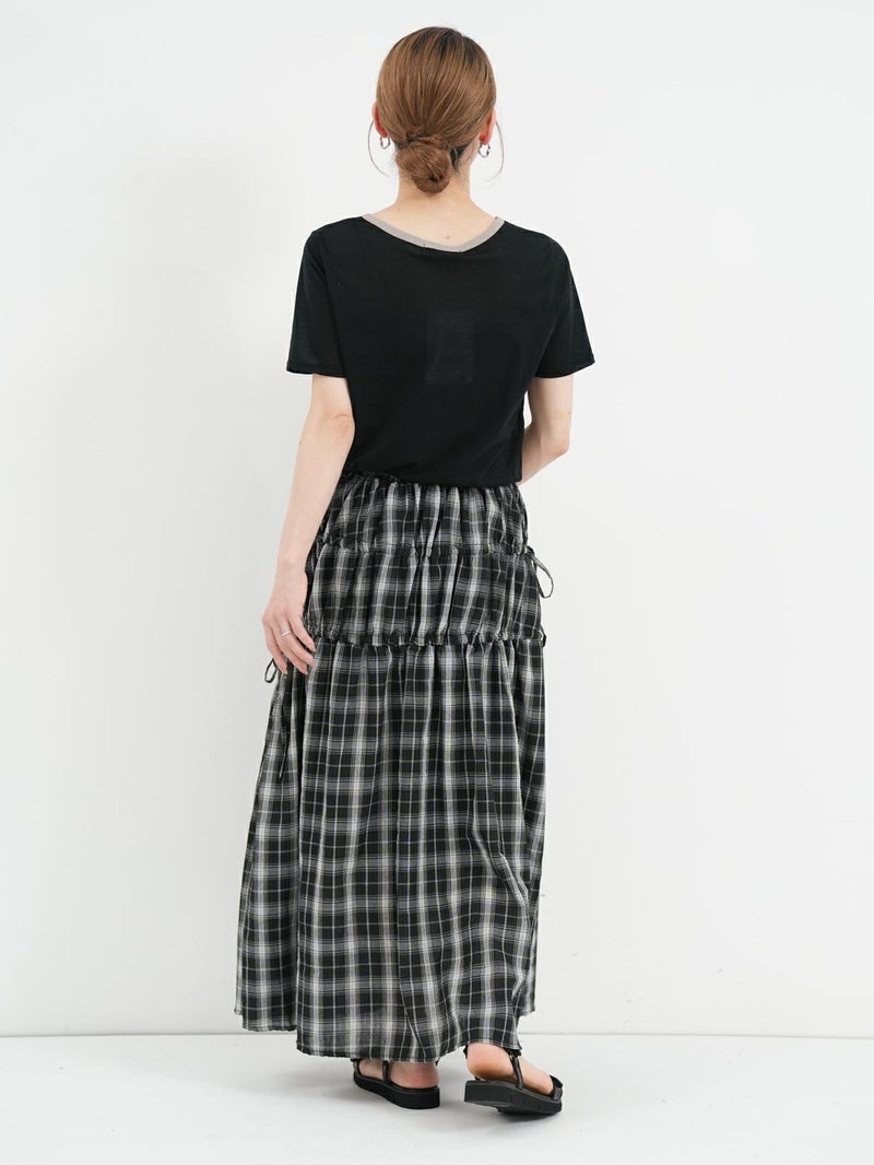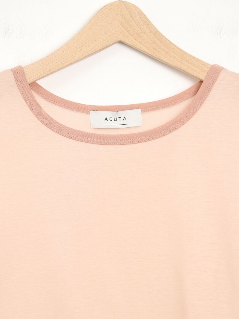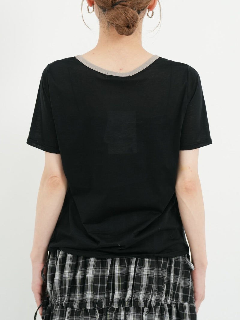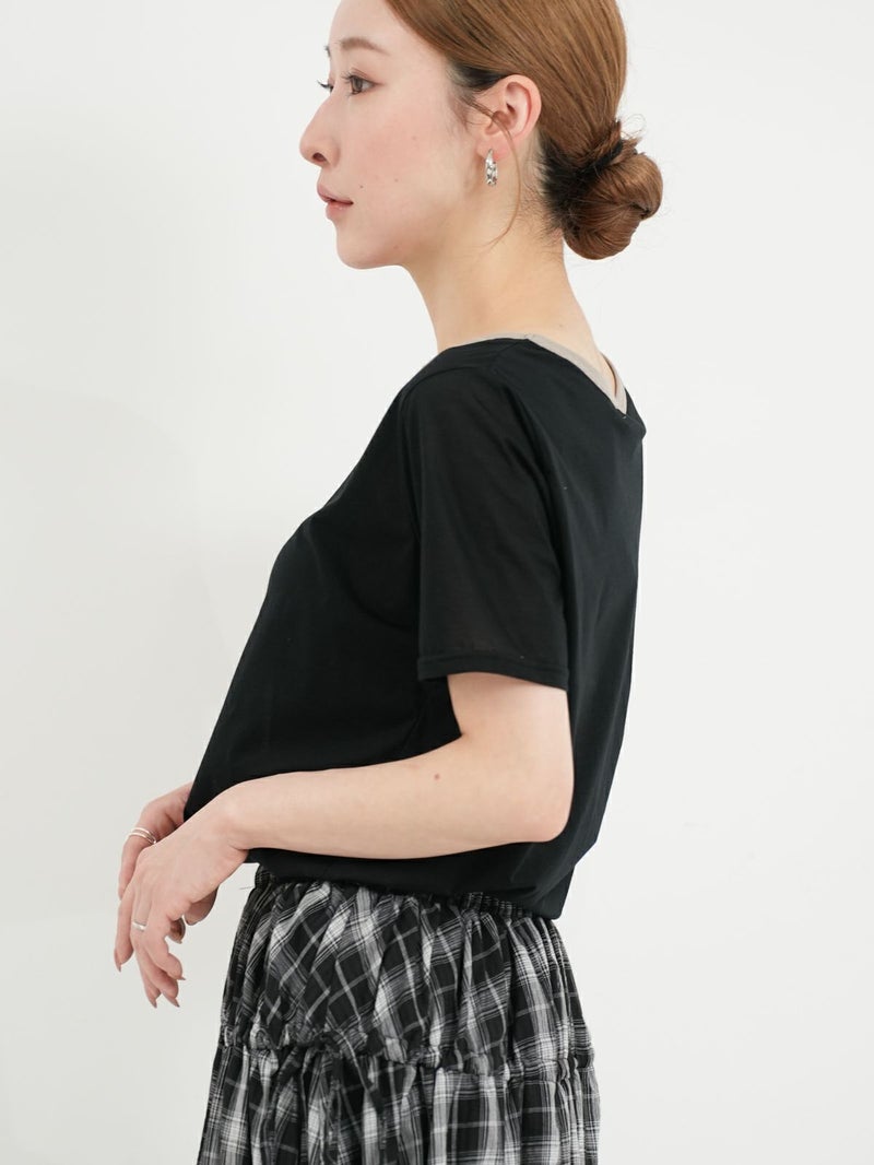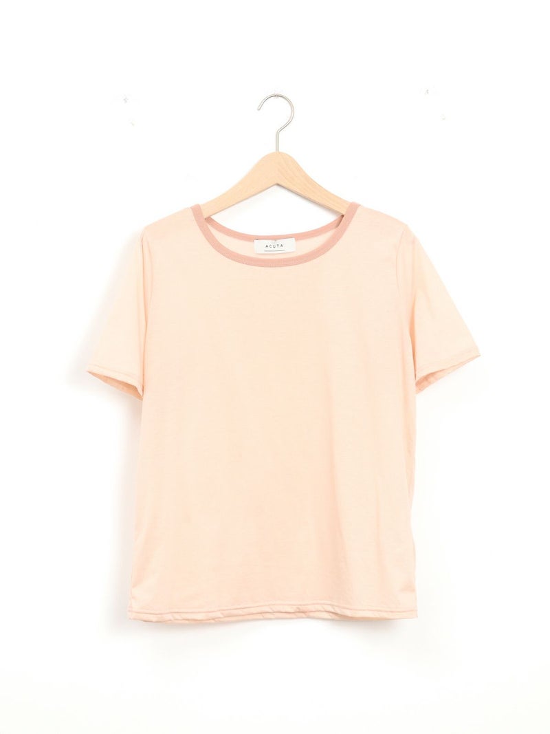シアー感が特徴で女性らしく着こなせるシアーリンガーTee。 繊細な細番手の糸で編み上げたハイゲージなカットソー素材を使用し、夏にぴったりなエアリーな着心地。衿幅は細く華奢に、大人の女性が着やすい配色も魅力。 程よく身体にフィットするサイズ感が魅力で、インナーとしてはもちろん、一枚着でシアー感を楽しむ着こなしもおすすめです。