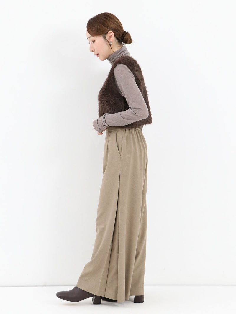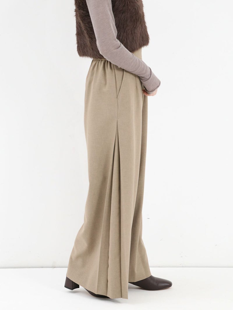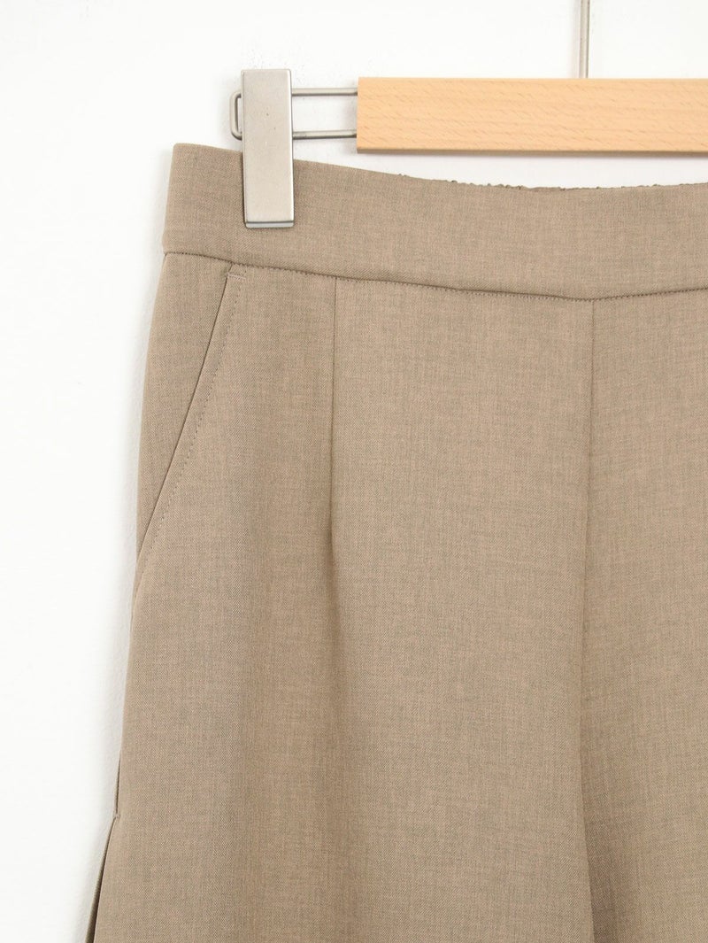シワになりにくく自然な落ち感が特徴の素材を使ったイージーケアパンツ。 サイドに施したタックが縦ラインを強調し、スッキリとした印象になります。シンプルなデザインながらさり気ないディテールが上品かつカジュアルにも合わせられる1枚です。
