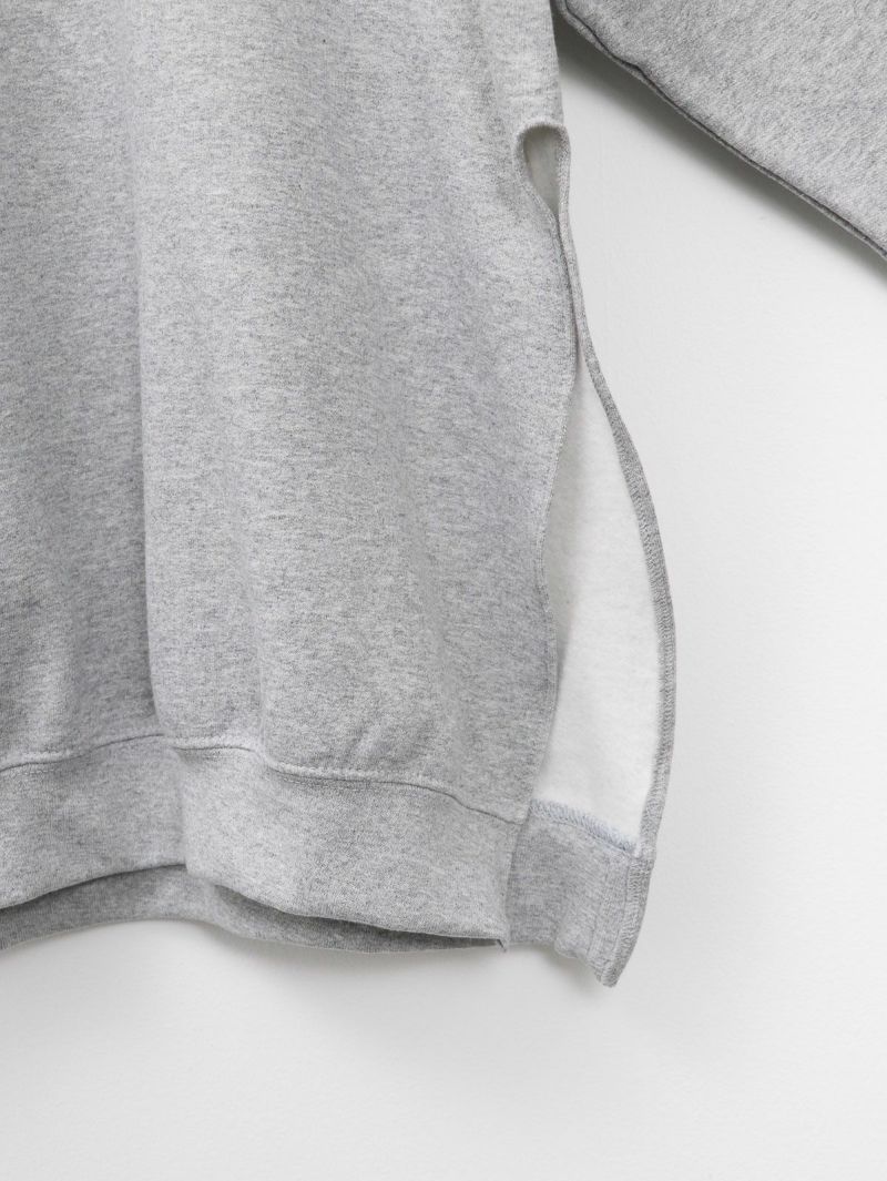 両サイドに深くスリットの入ったスウェットトップス。 コットン/ポリエステルの軽く暖かい裏起毛です。シャツやカットソーをレイヤードしたり、ワンピースの上に被って着たりと幅広いコーディネートに活躍します。